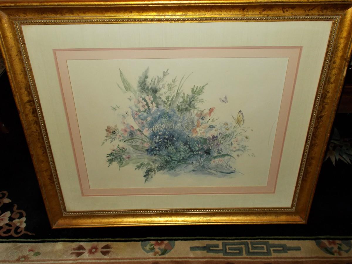 This beautifully framed floral watercolor is 312 of 1500 prints and measures 36" x 30"