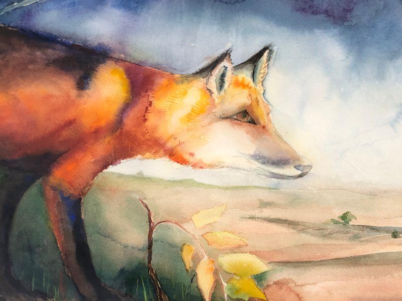 Beautiful Fox Original Signed Watercolor Painting by Beverly Grossman