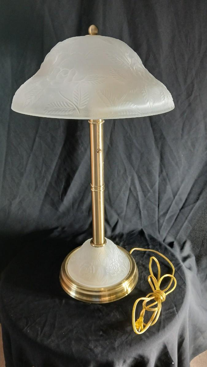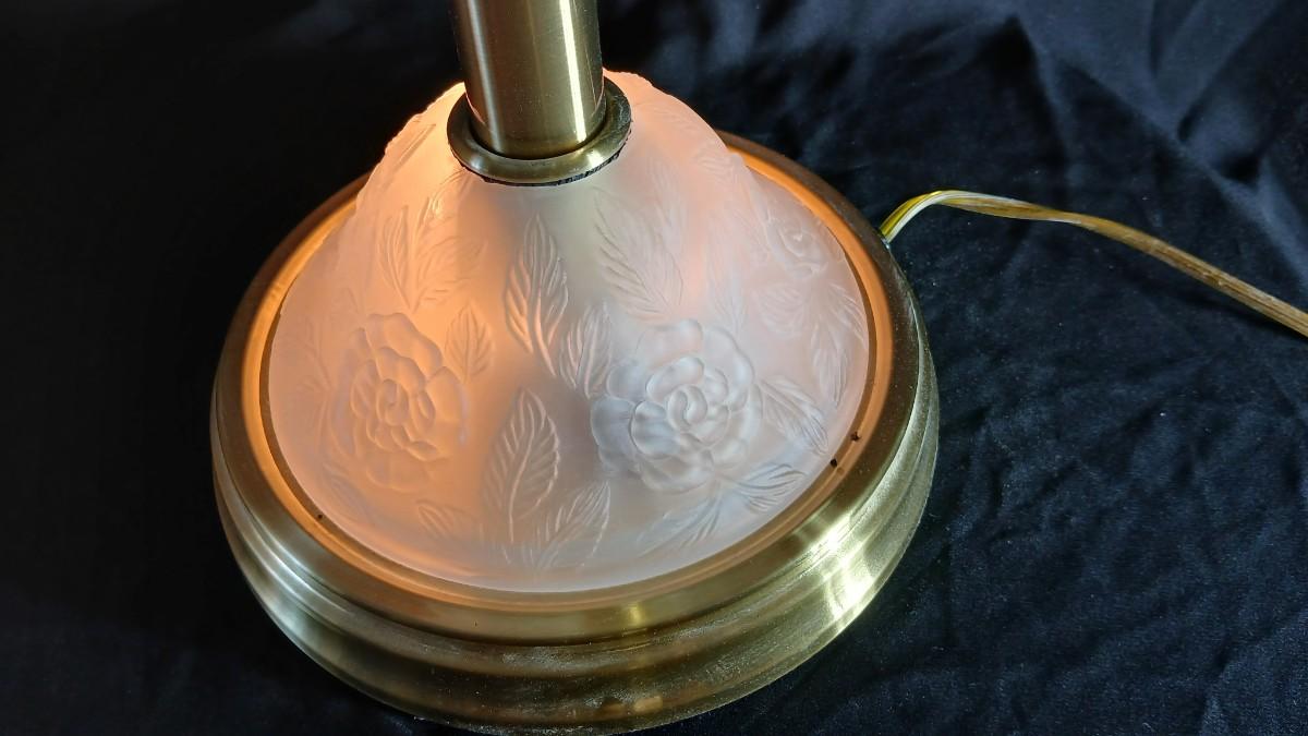 Beautiful, frosted glass lamp with Roses - With night-light base 29" Tall with a 16" wide globe