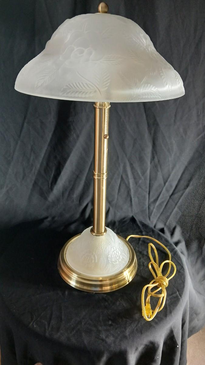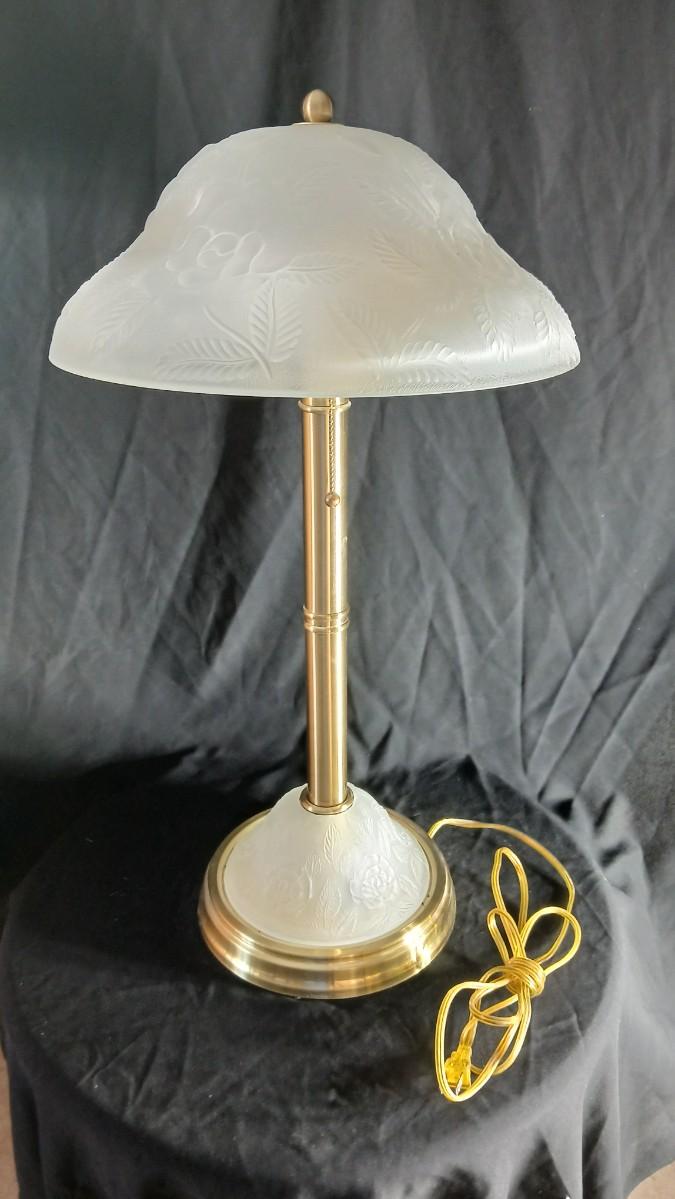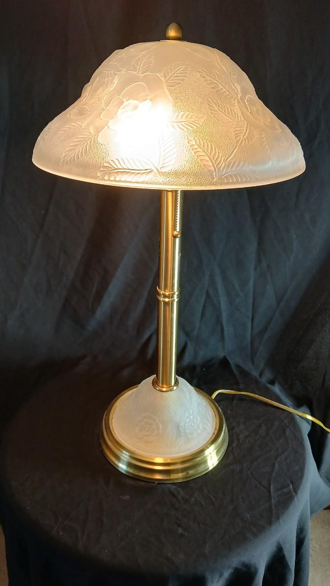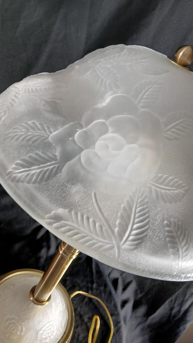 Beautiful, frosted glass lamp with Roses - With night-light base 29" tall