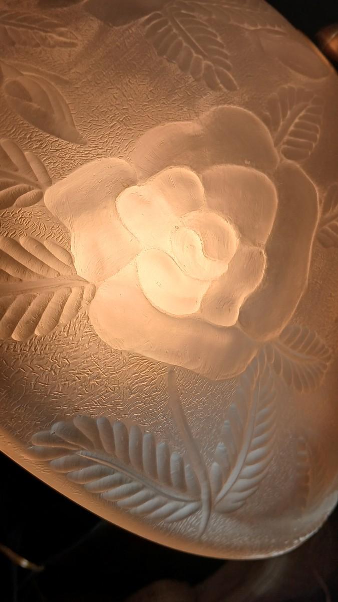 Beautiful, frosted glass lamp with Roses - With night-light base