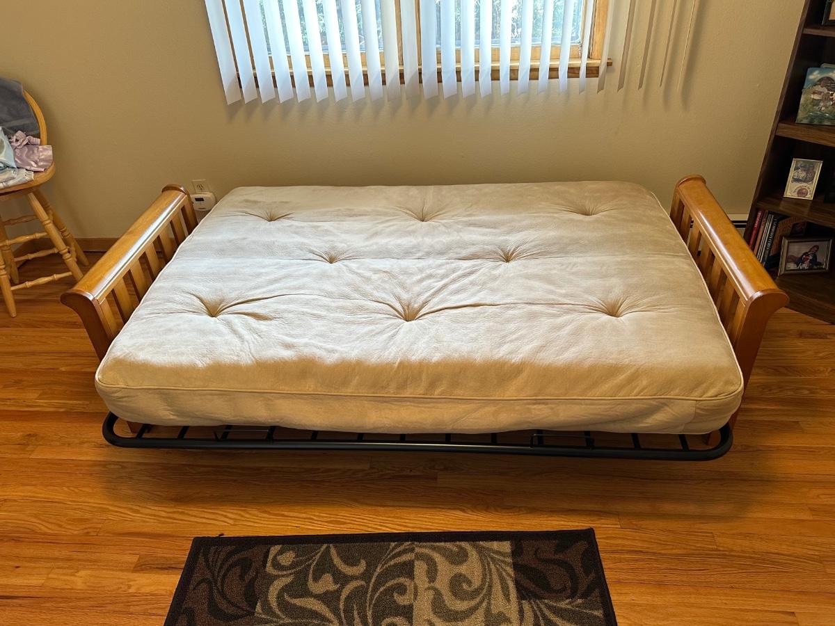 Measures 36”H x 83”W x 36”D when put up as a couch.