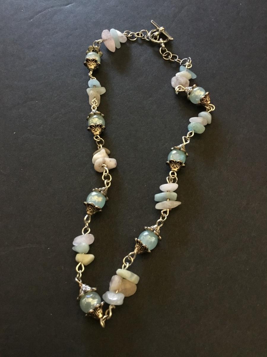 Beautiful gemstone and Silvertone toggle necklace. Healing stone necklace. Very nice very beautiful.