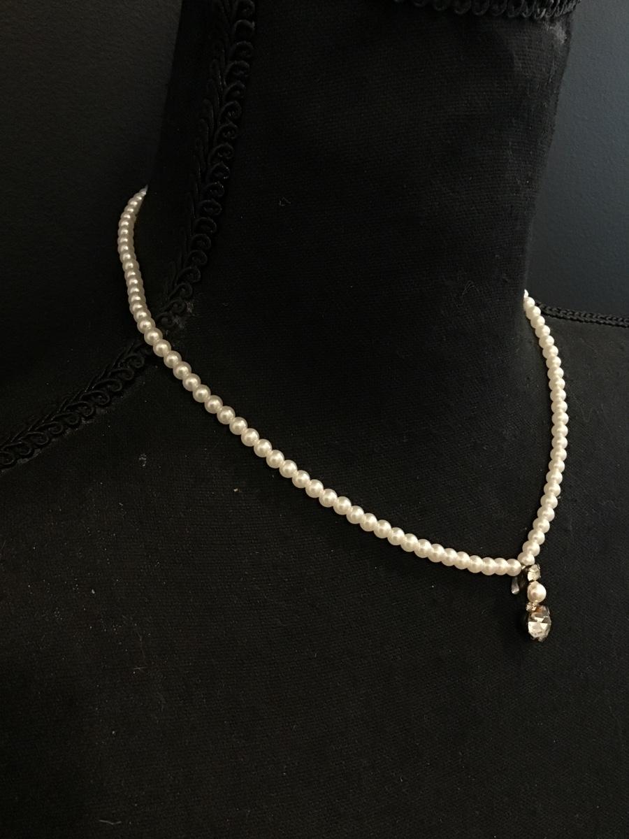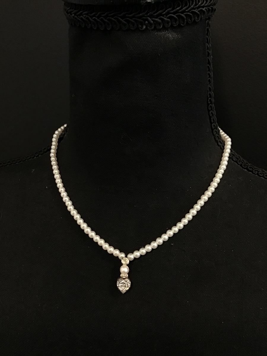 Beautiful, genuine, pearl vintage, silver plated, heart, rhinestone, art deco necklace