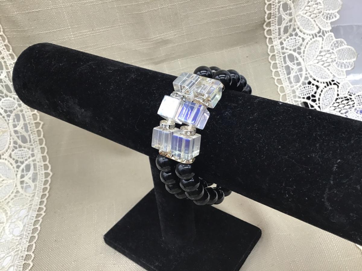 Beautiful Glass And Bead Bracelet with Rhinestone
