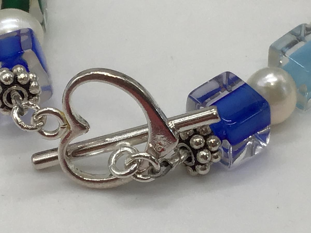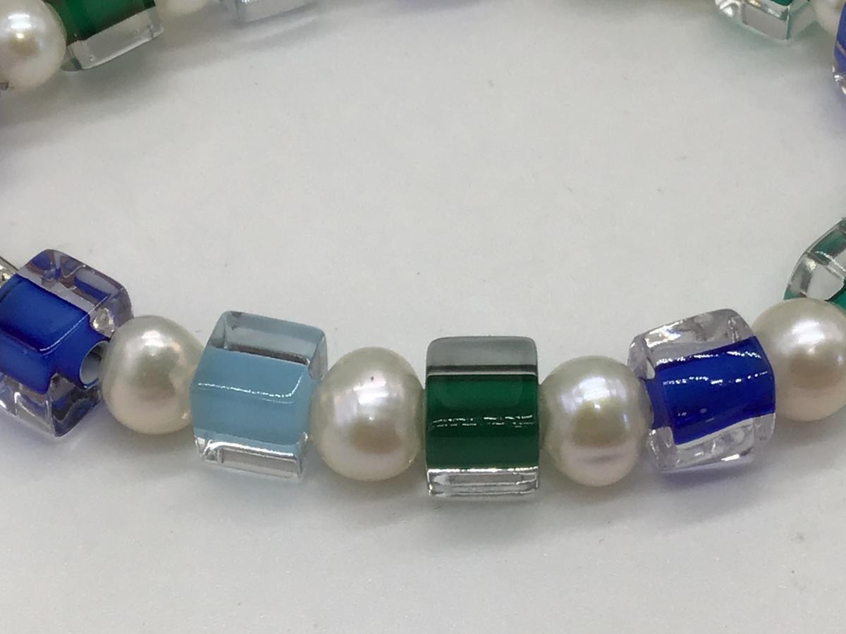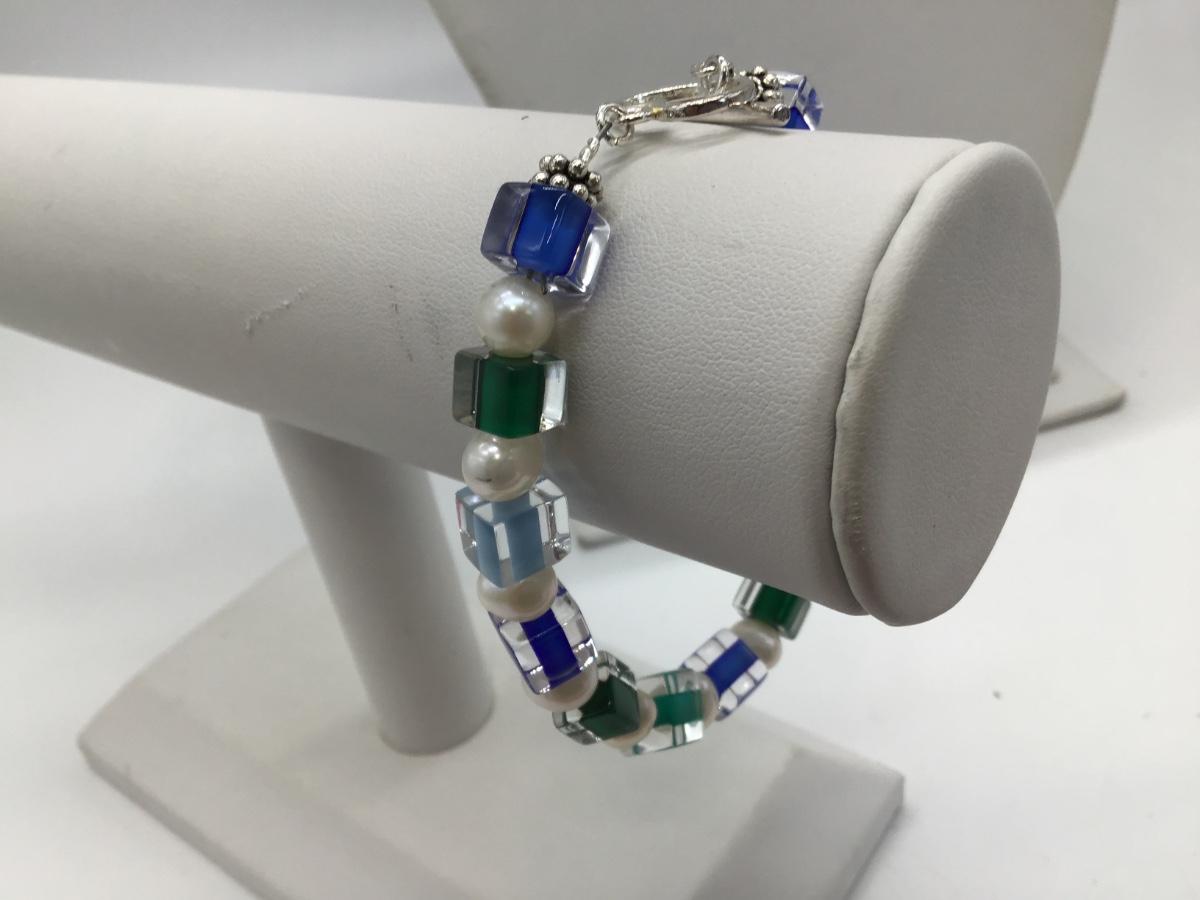 Beautiful Glass and Pearl Silver 925 Bracelet