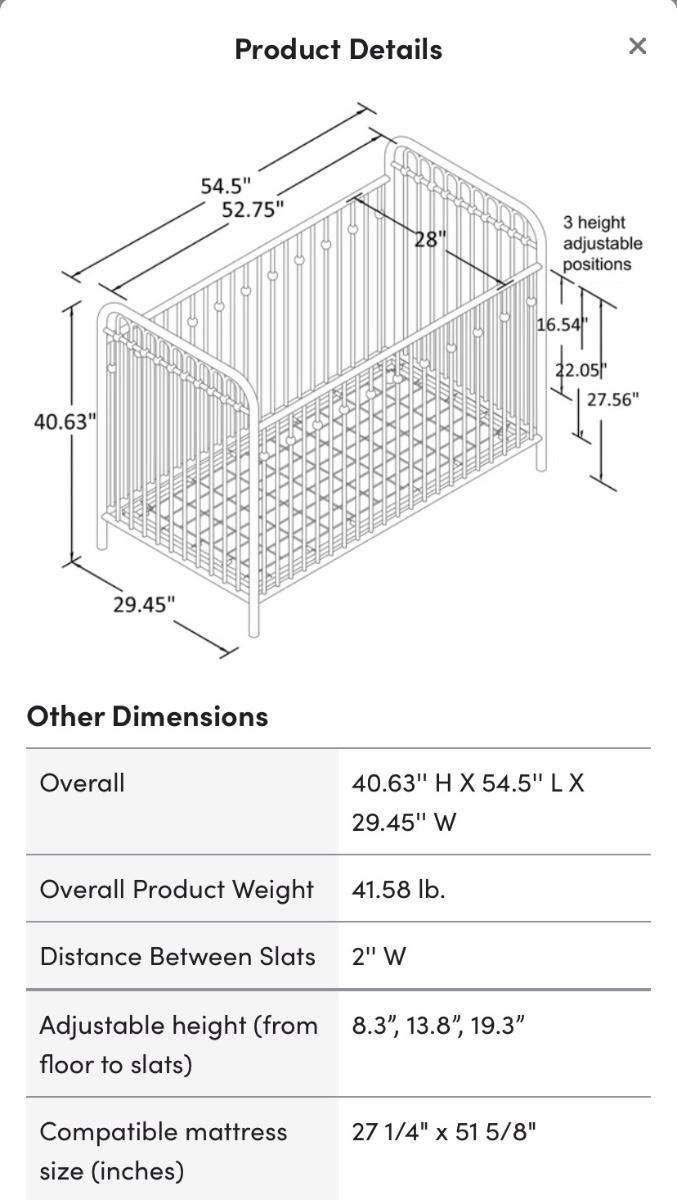 LITTLE SEEDS ~ Monarch Hill Ivy ~ Gold Metal Crib ~ JPMA Certified ~ Like New