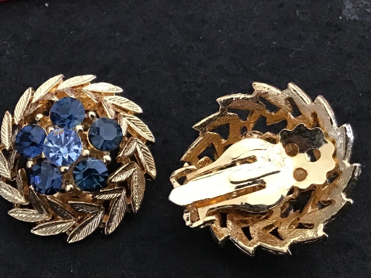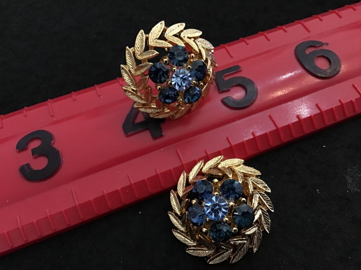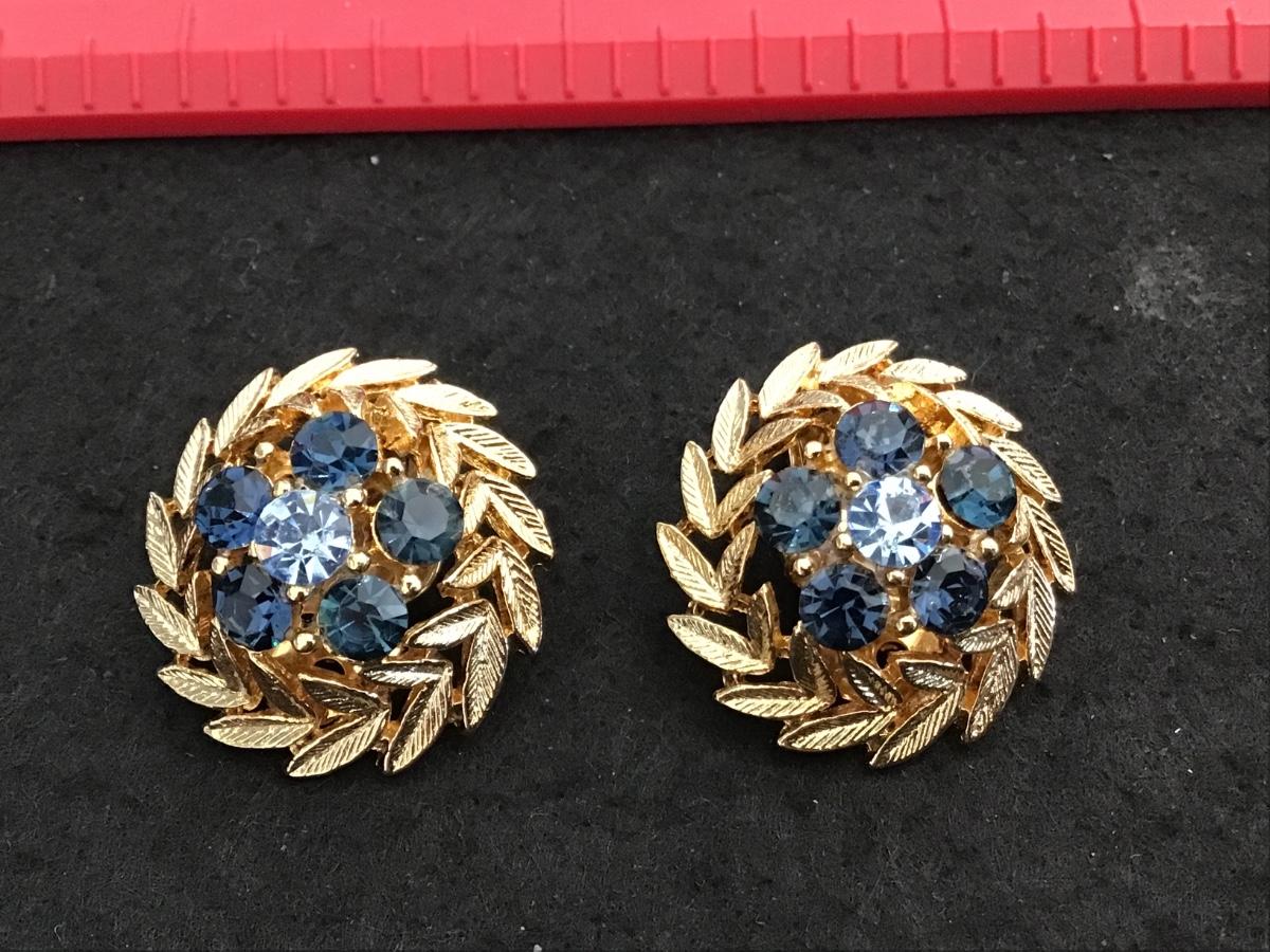 Beautiful Gold Textured Blue Rhinestone Excellent
