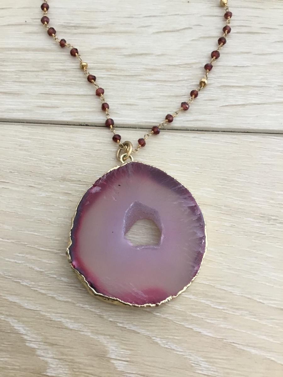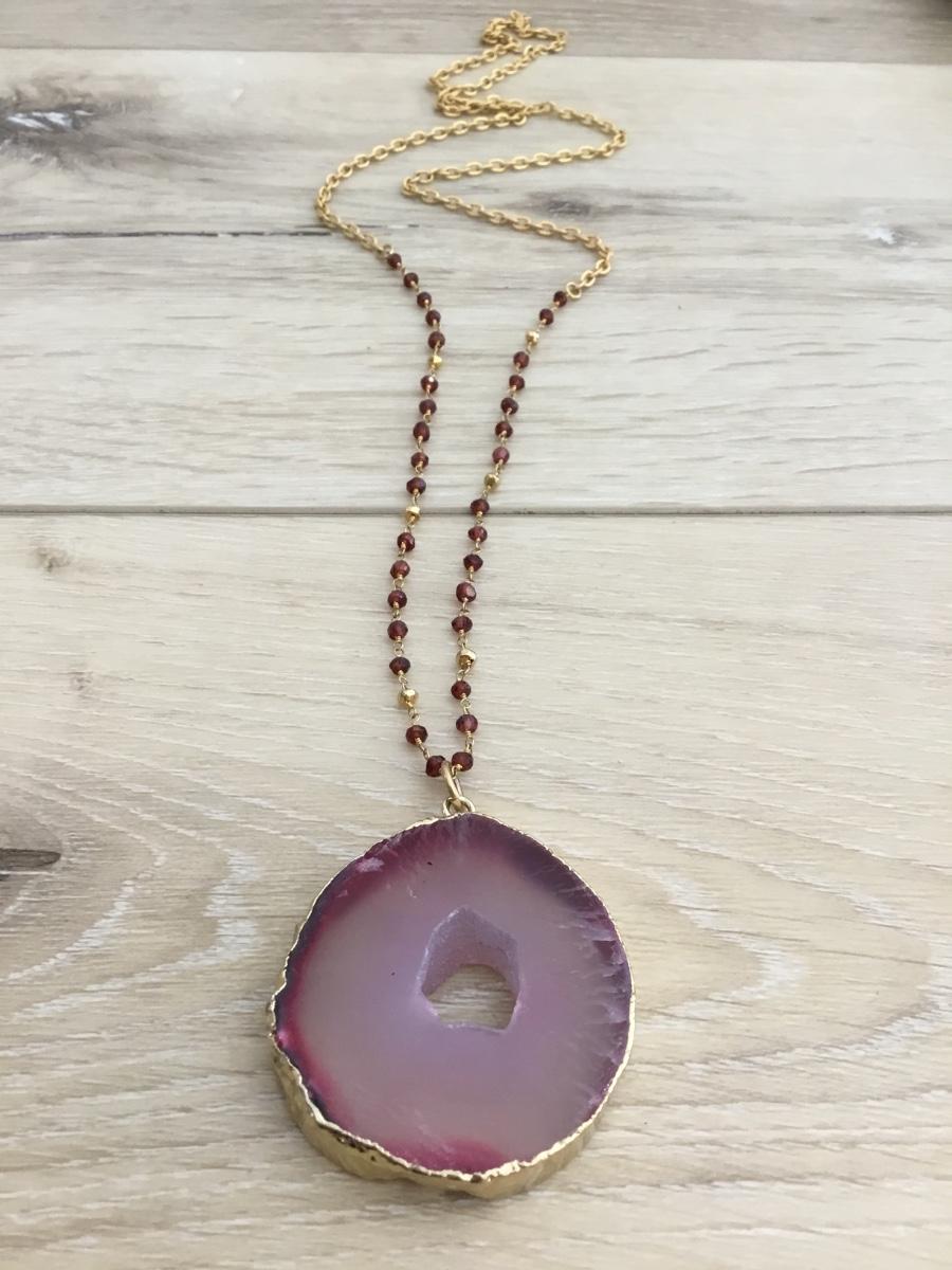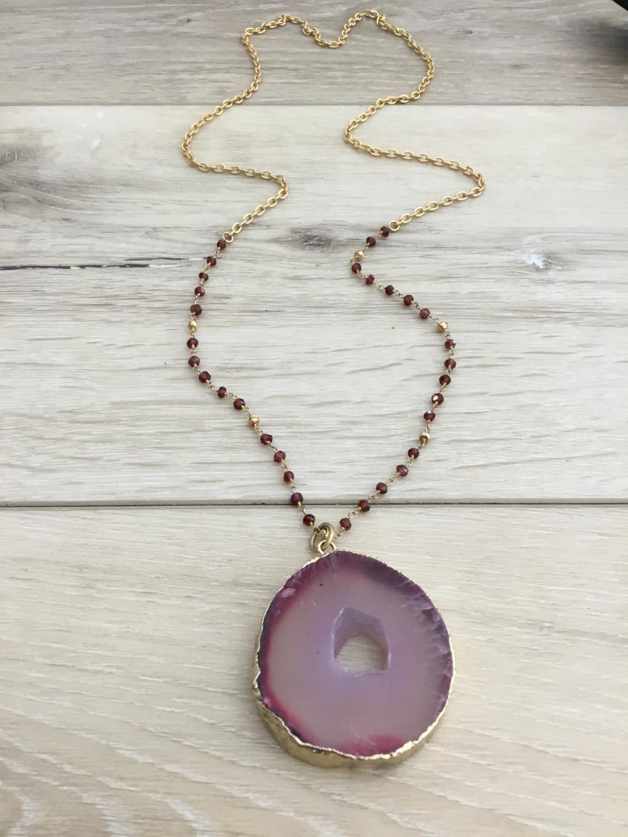 Beautiful gold tone agate and chain necklace
