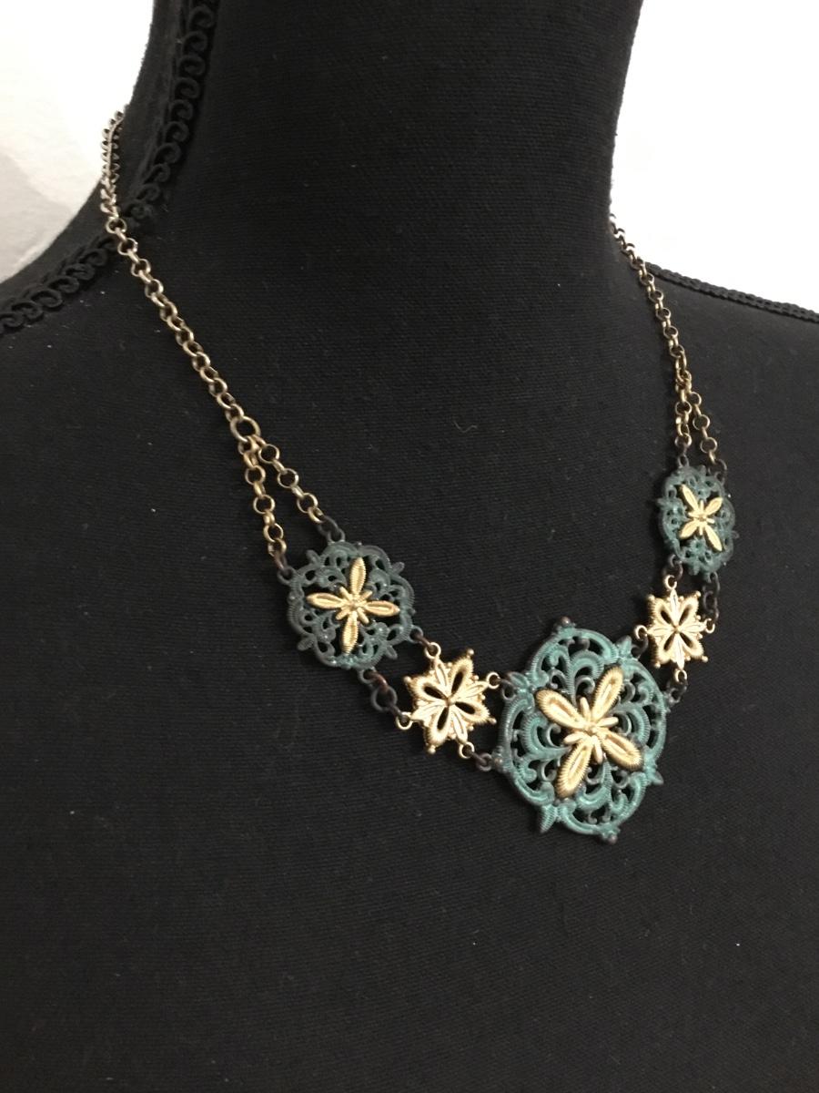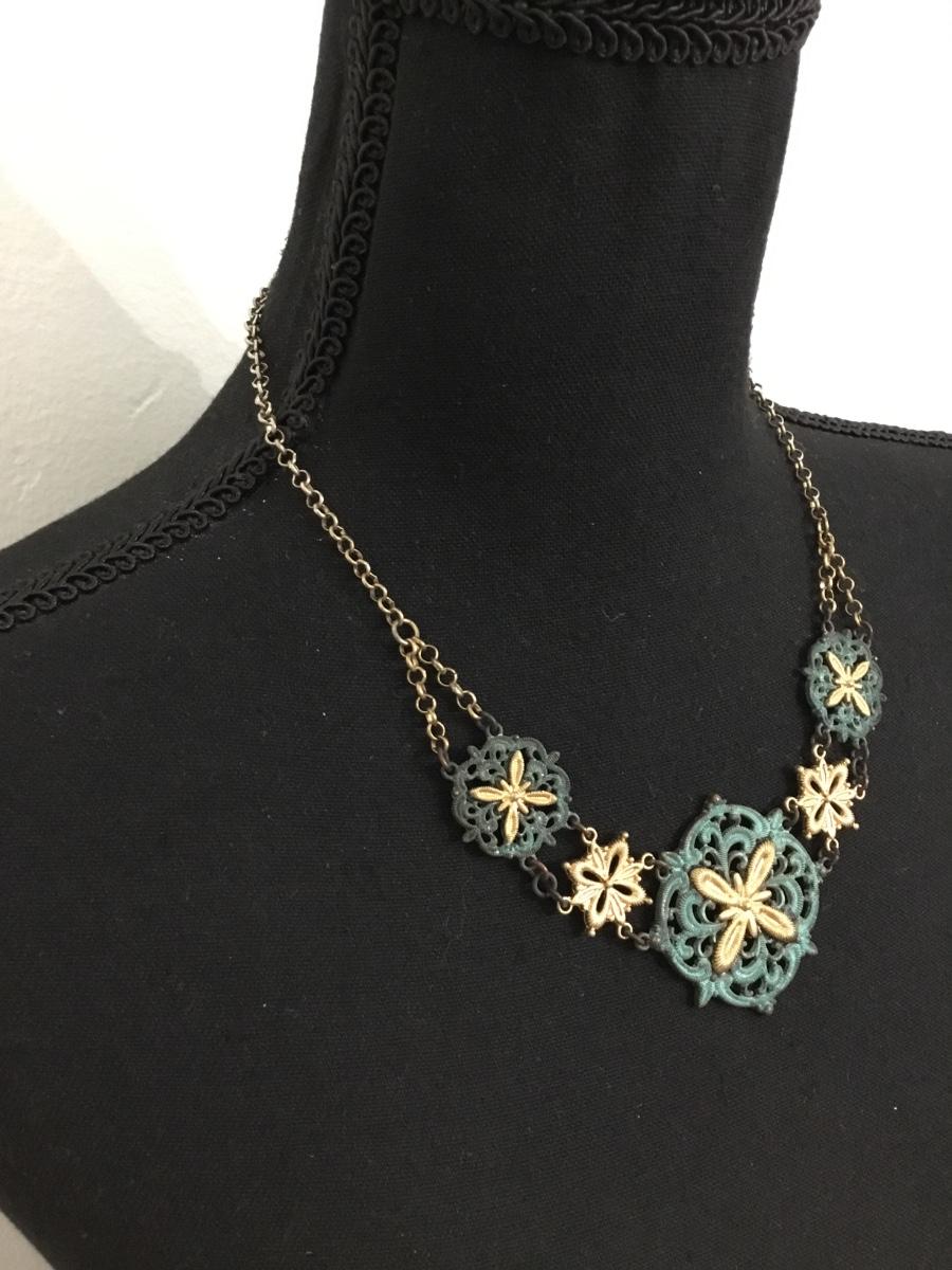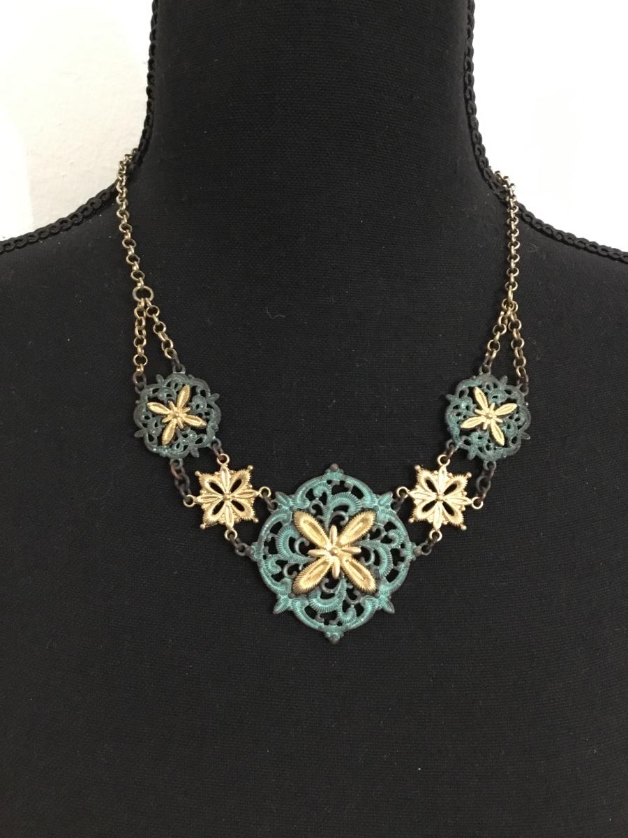 Beautiful gold tone and green statement necklace