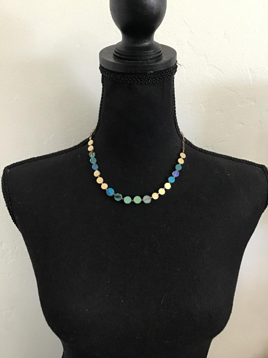 Beautiful, gold tone, circular crystal bead necklace very beautiful