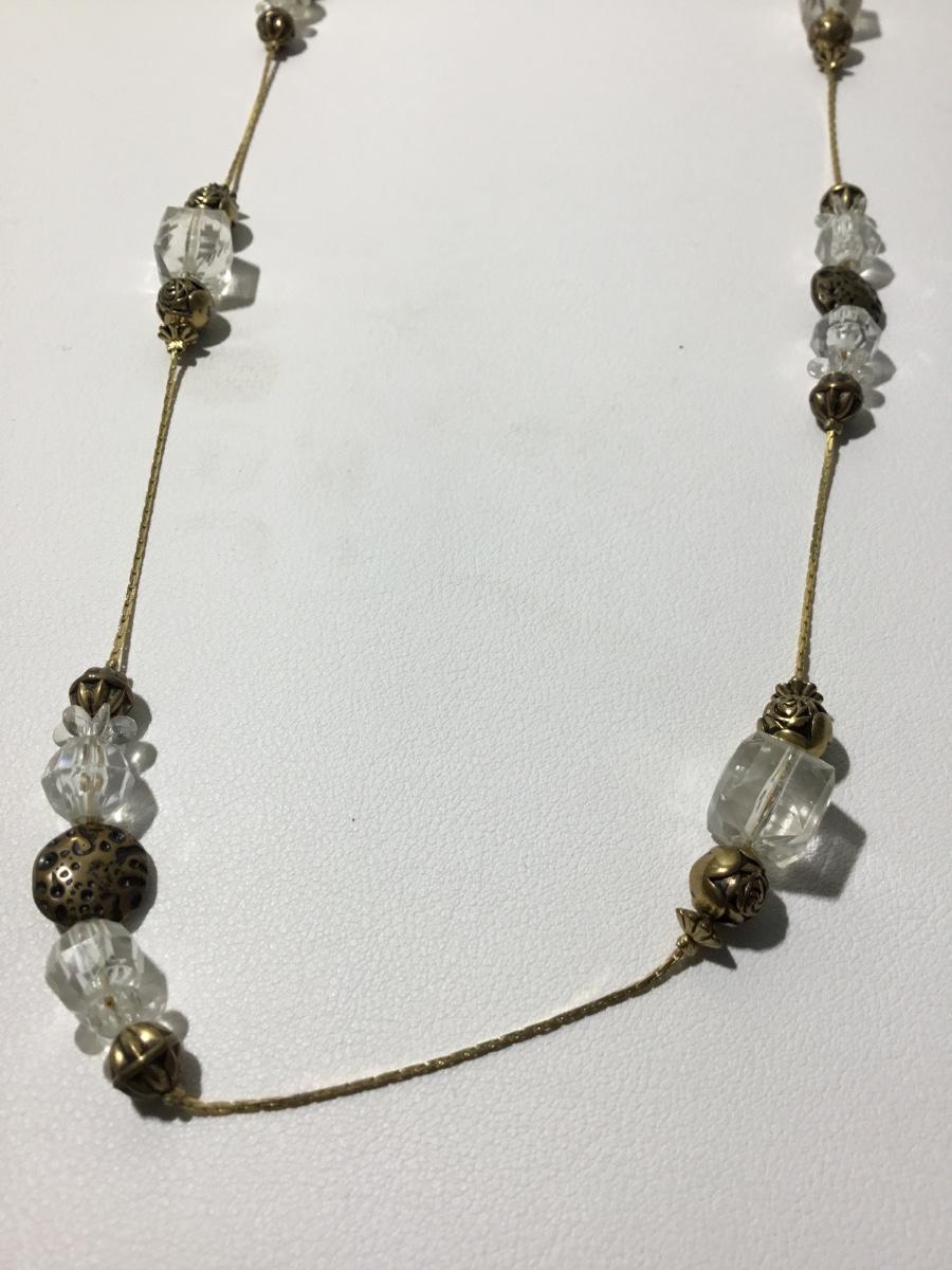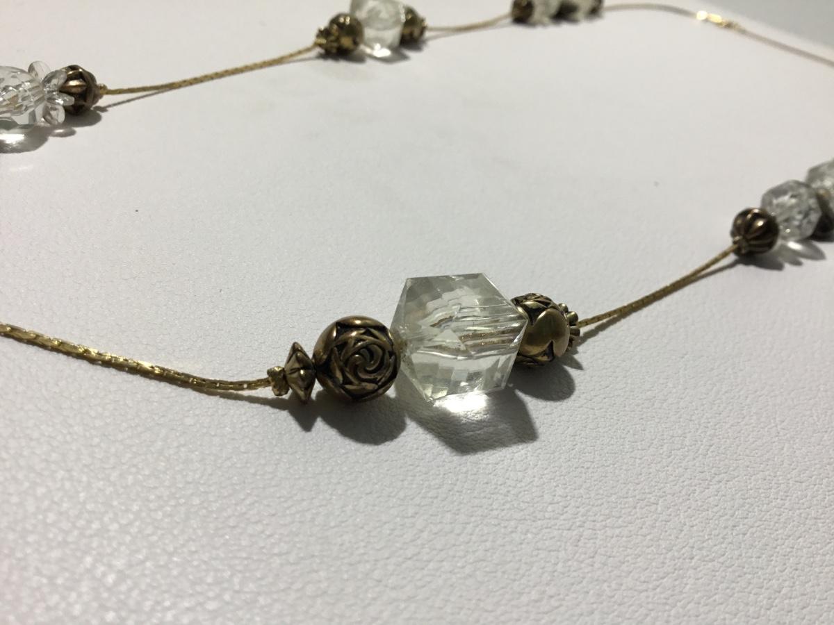 Beautiful gold tone clear beaded fashion necklace