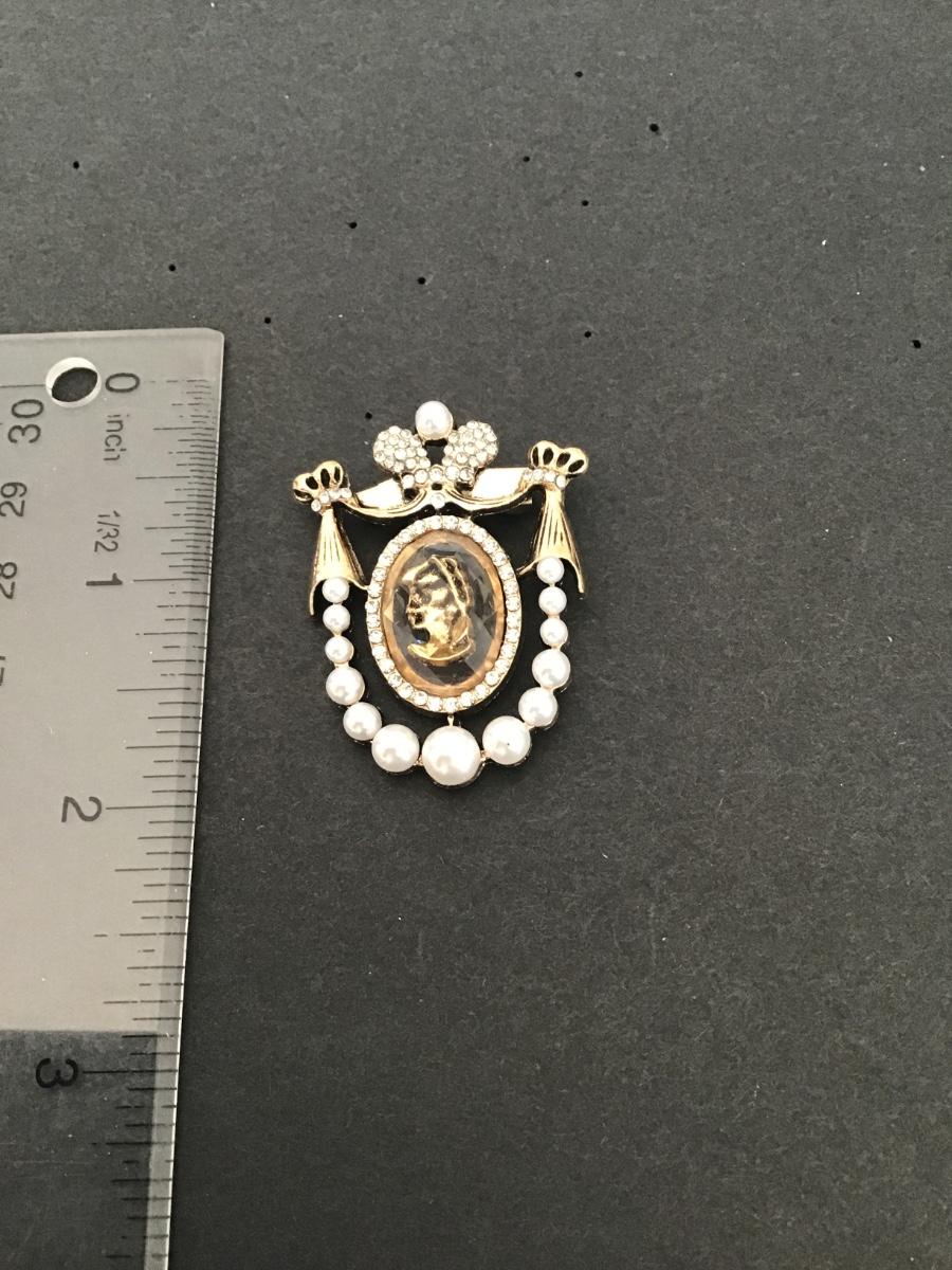 Beautiful Gold Tone clear rhinestones cameo Fashion Brooch