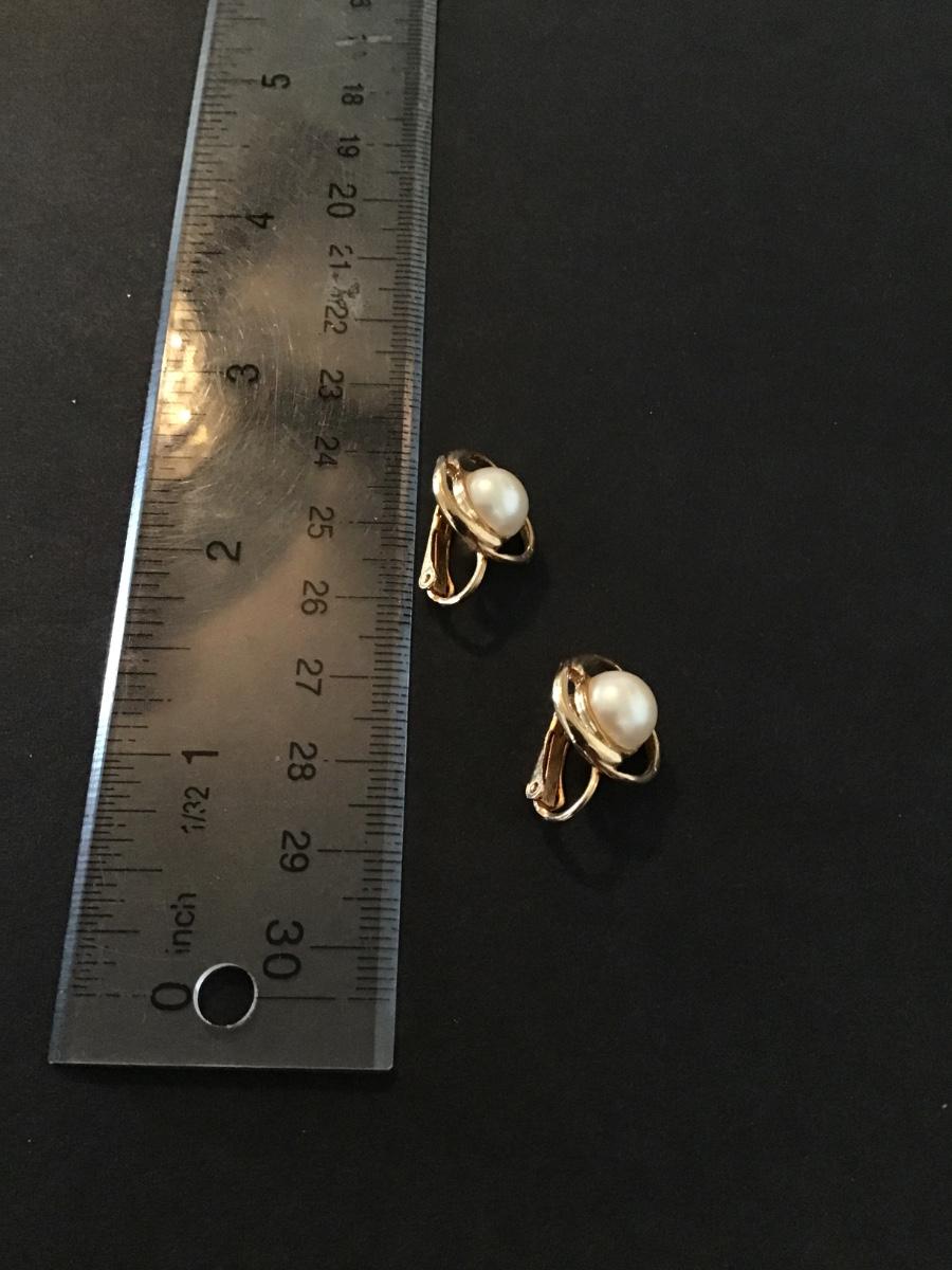 Beautiful Gold Tone Clip on Earrings with Faux pearl Please see attached pictures