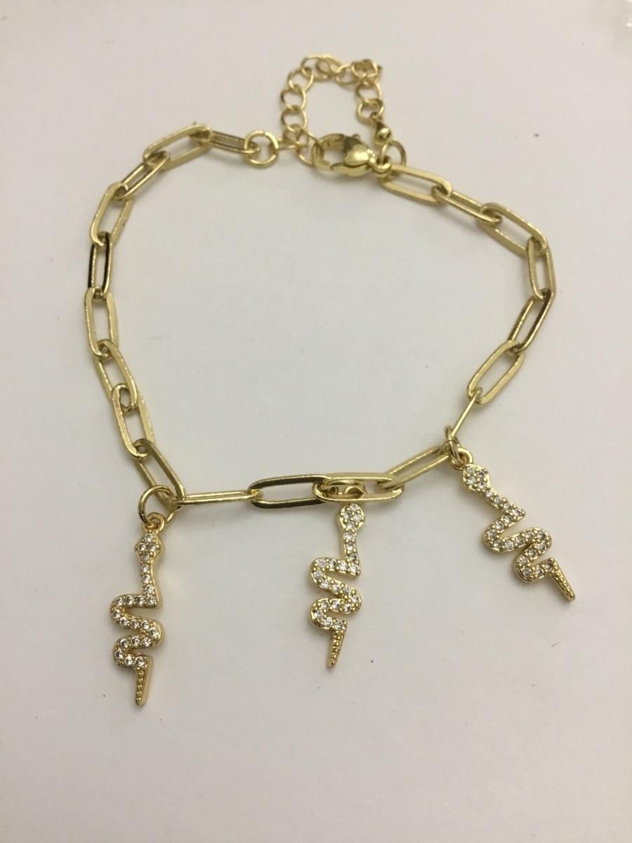 Beautiful, gold tone, crystal rhinestone snake, charm bracelet