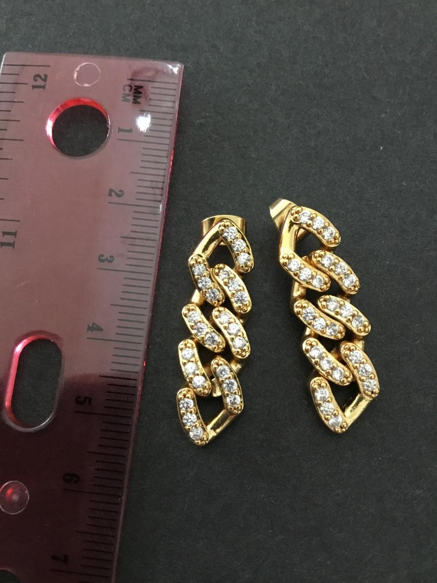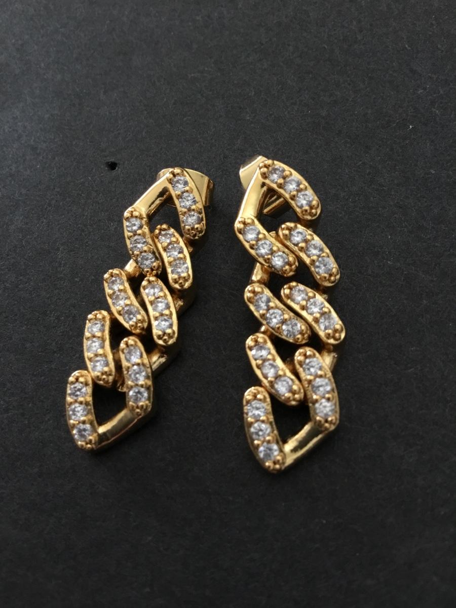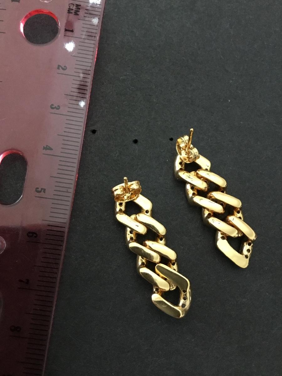 Beautiful gold tone, crystal rhinestone chain link, dangle earrings