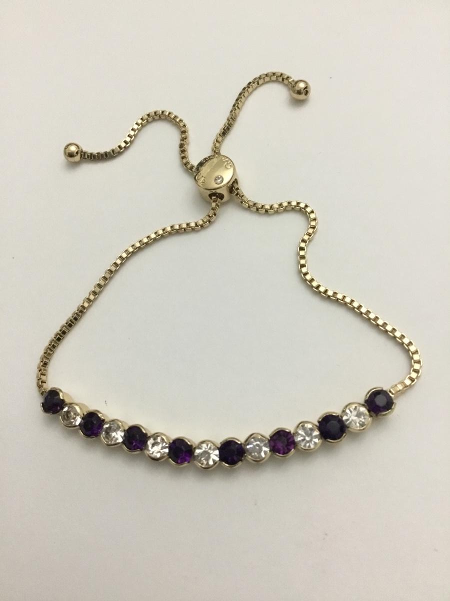 Beautiful, gold tone, dark purple, rhinestone charter club slider bracelet