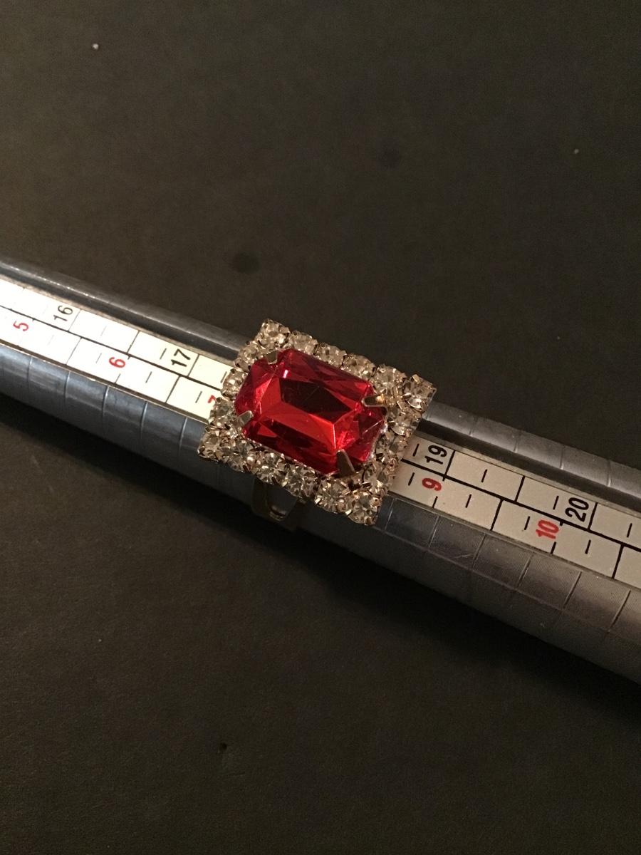 Beautiful Gold Tone Fashion ring with red and clear rhinestones