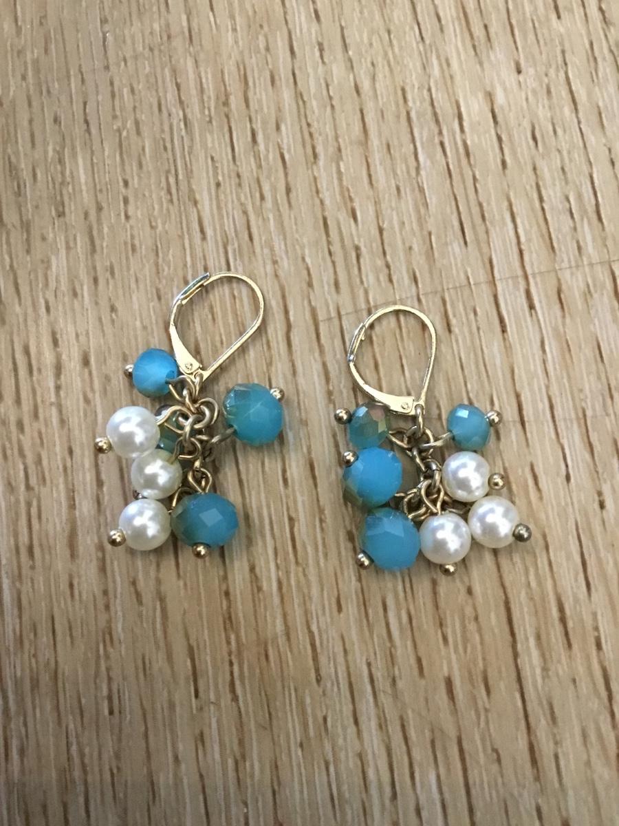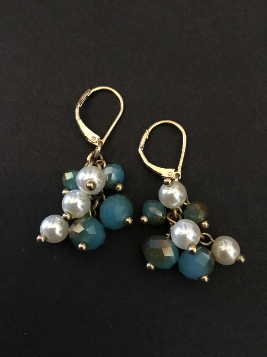 Beautiful gold tone, faux, pearl faceted, glass bead, dangle earrings