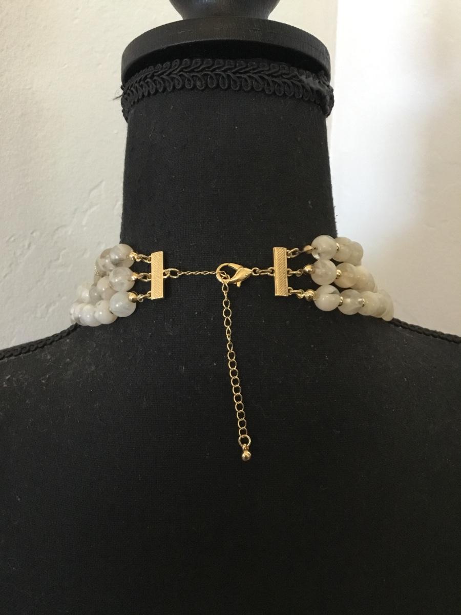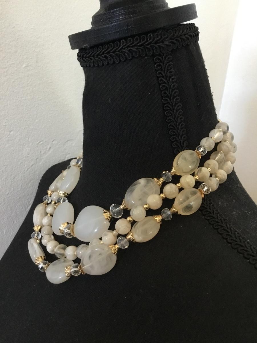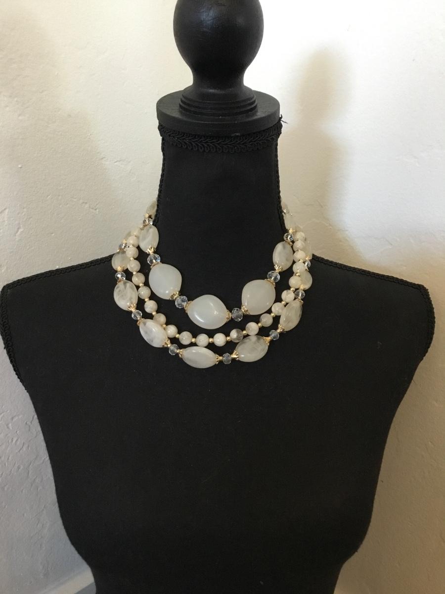 Beautiful, gold tone, faux stone, crystal bead, multi strand statement, necklace