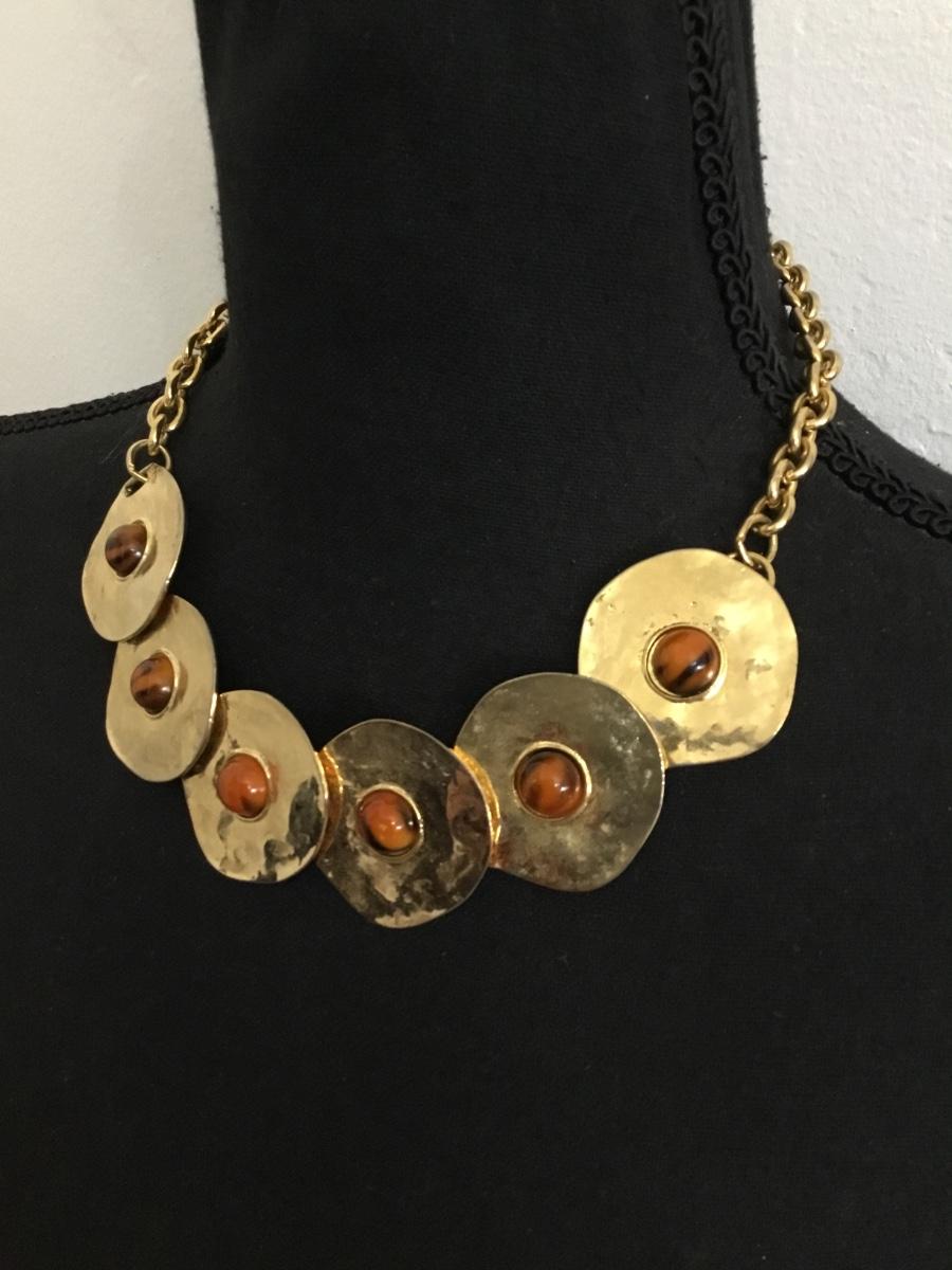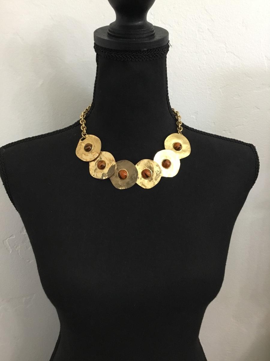 Beautiful, gold tone faux tigers, eye, statement, necklace