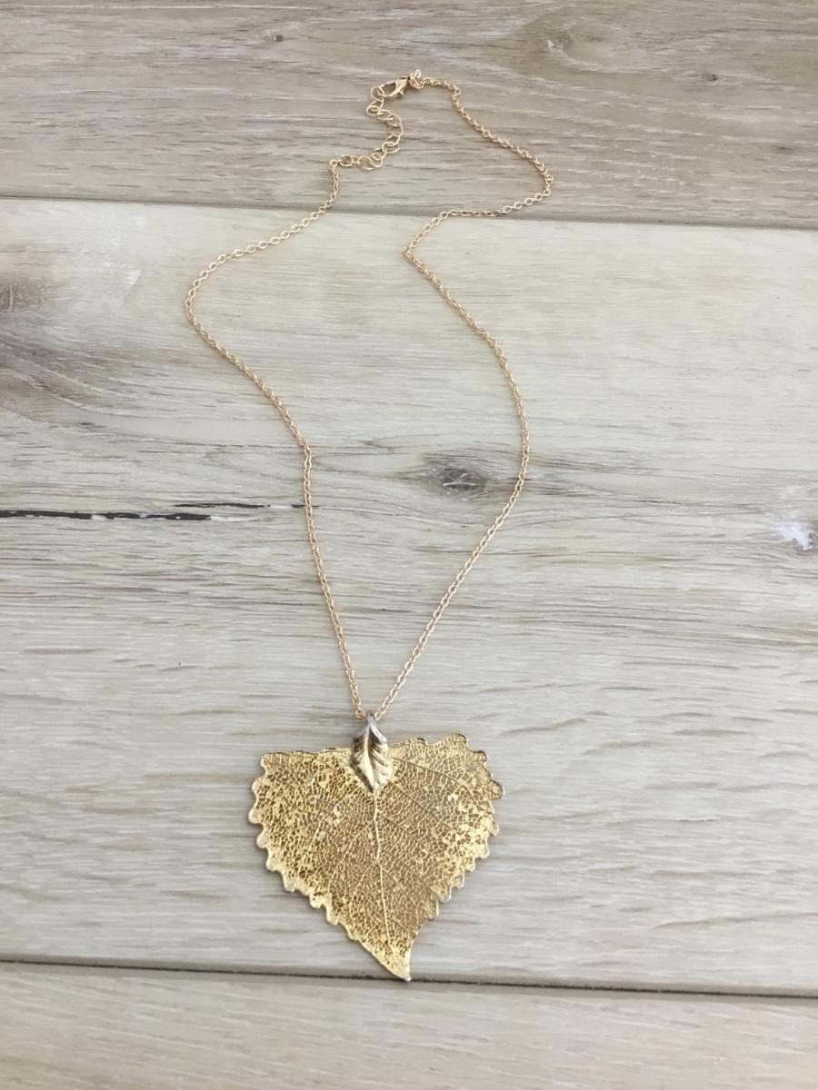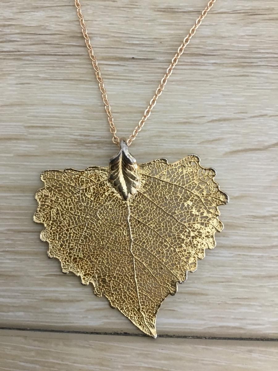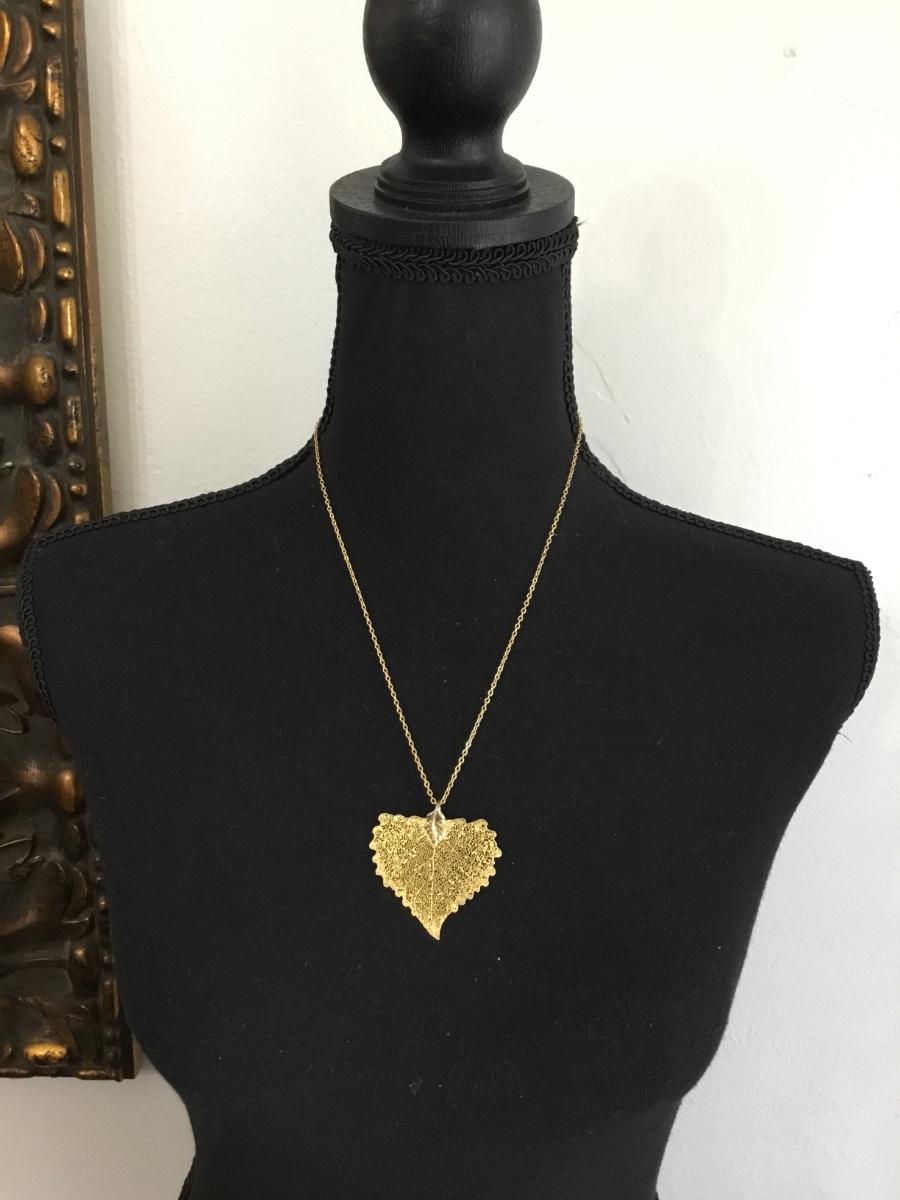 Beautiful gold tone Filagree leaf pendant with gold tone chain necklace