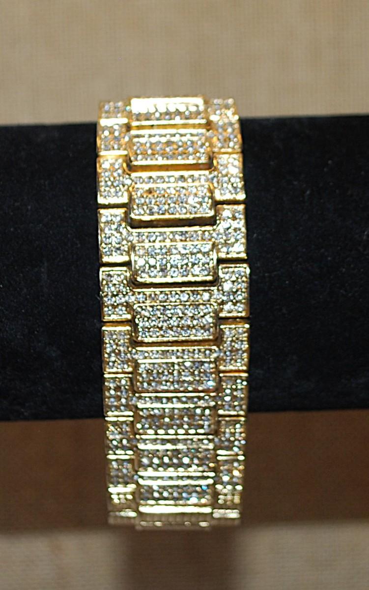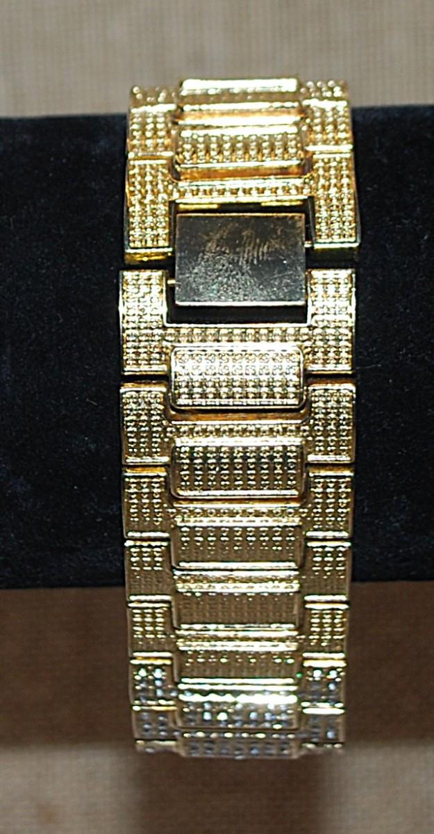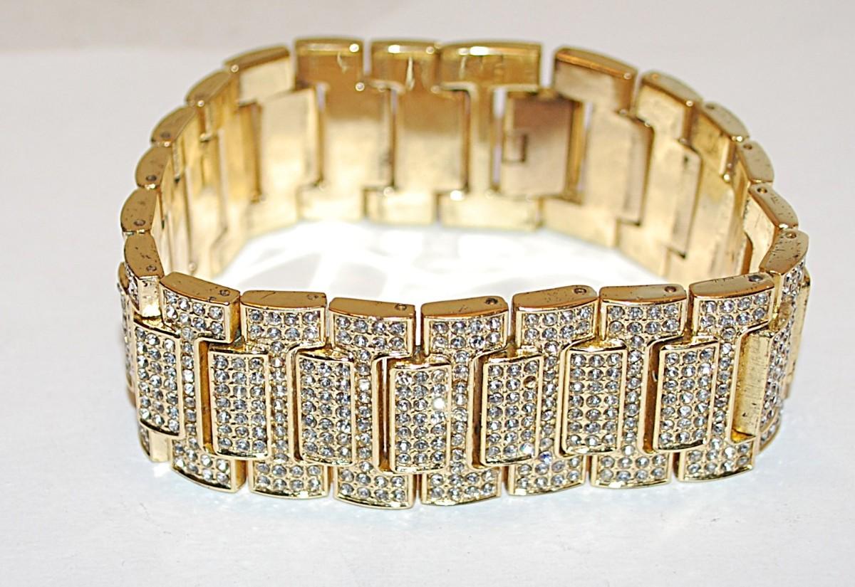 Beautiful Gold Tone JEWEL STUDDED BRACELET (2¼" Opening) with Half Infinity Clear Stone Segments & Overlapping Closure