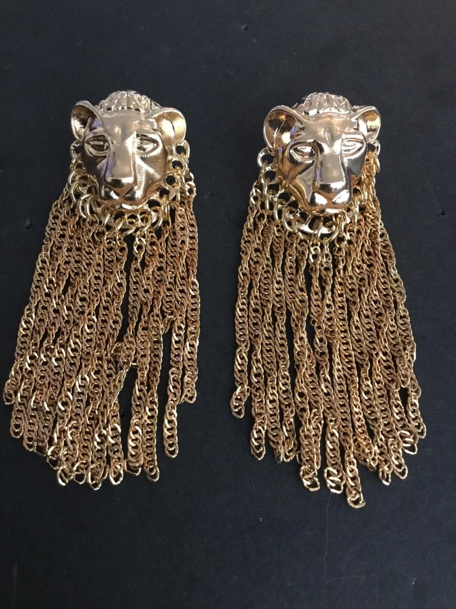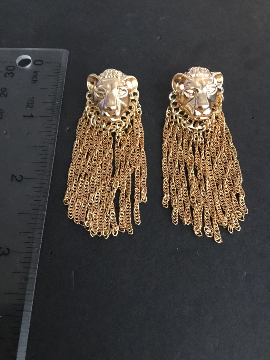 Beautiful, gold tone, lion statement earrings