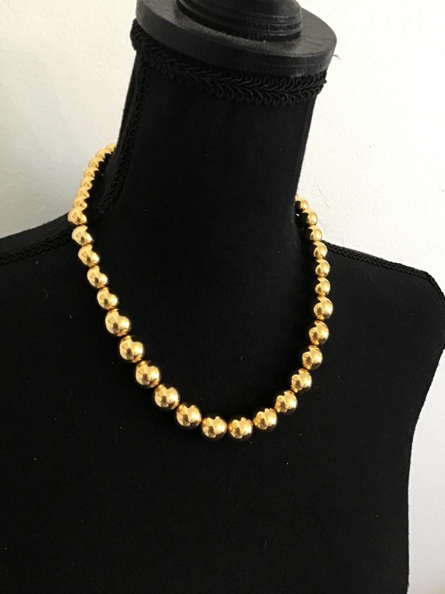 Beautiful Gold Tone Metal Bead Necklace