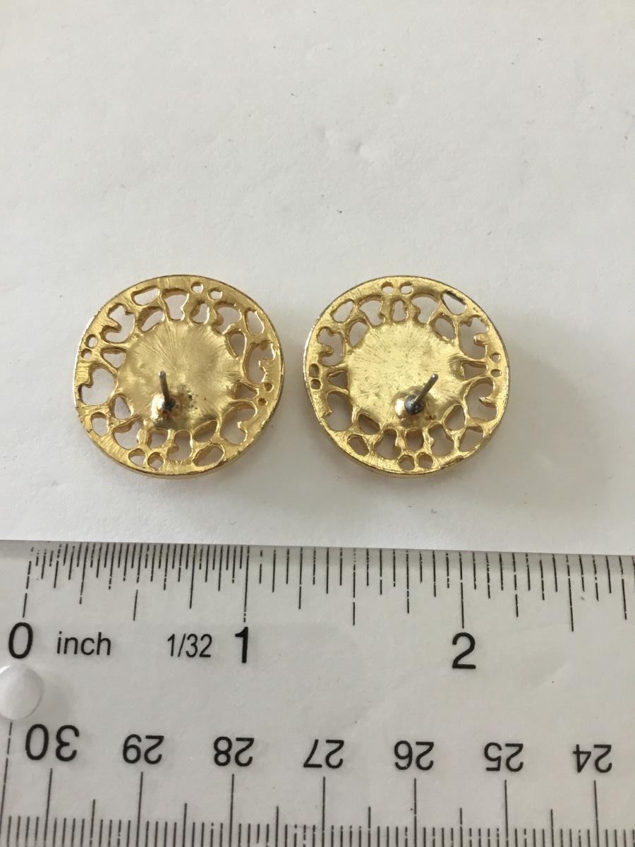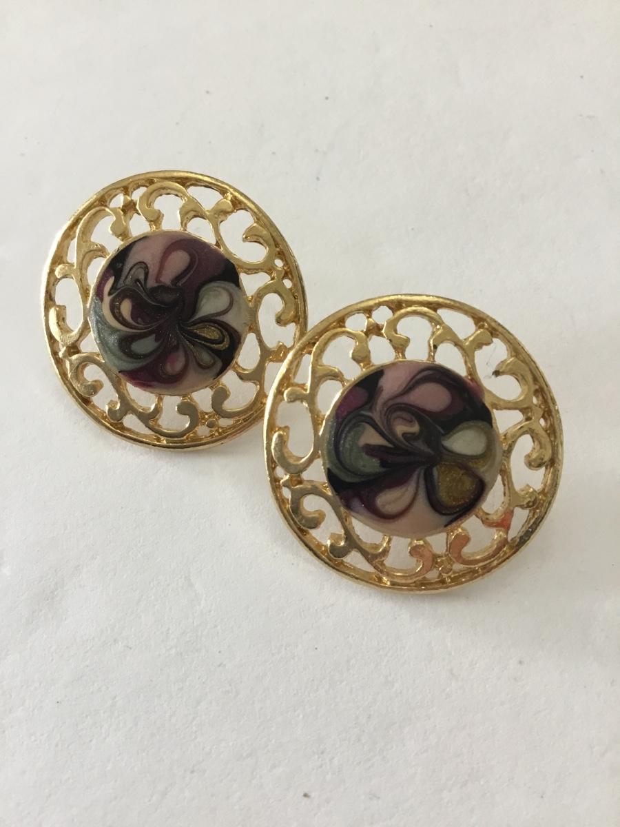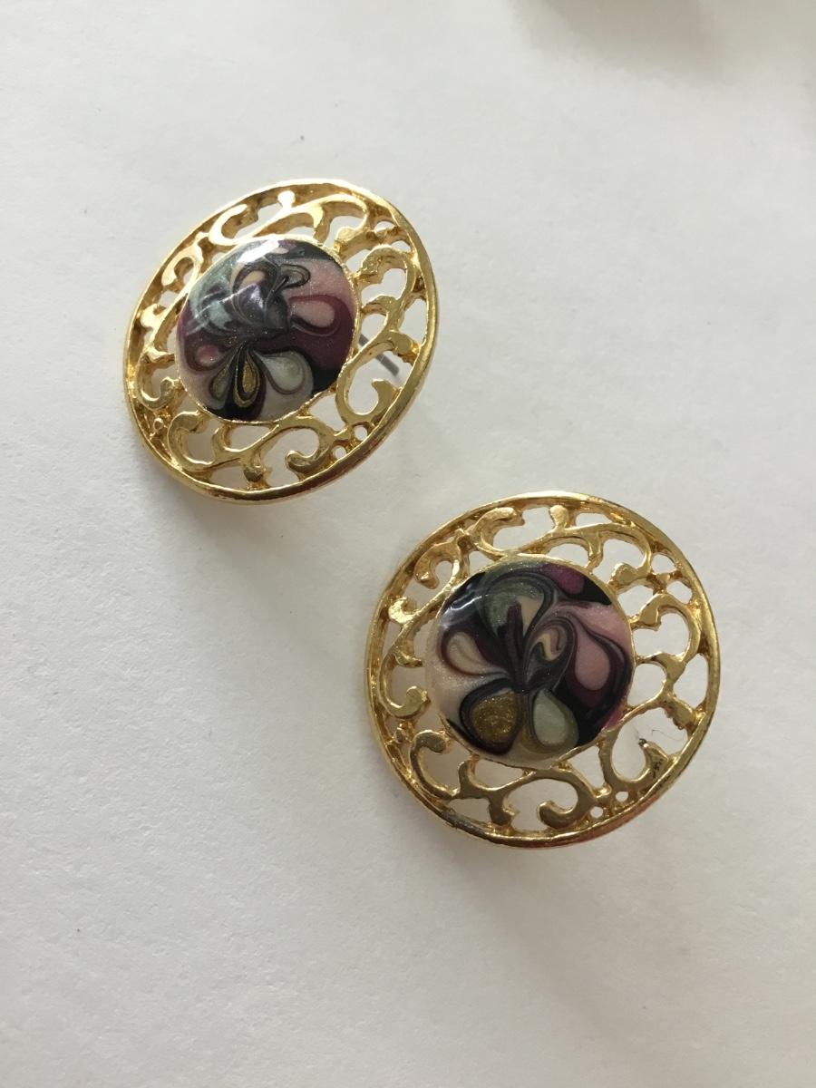 Beautiful, gold tone, multicolored enamel circular stud earrings