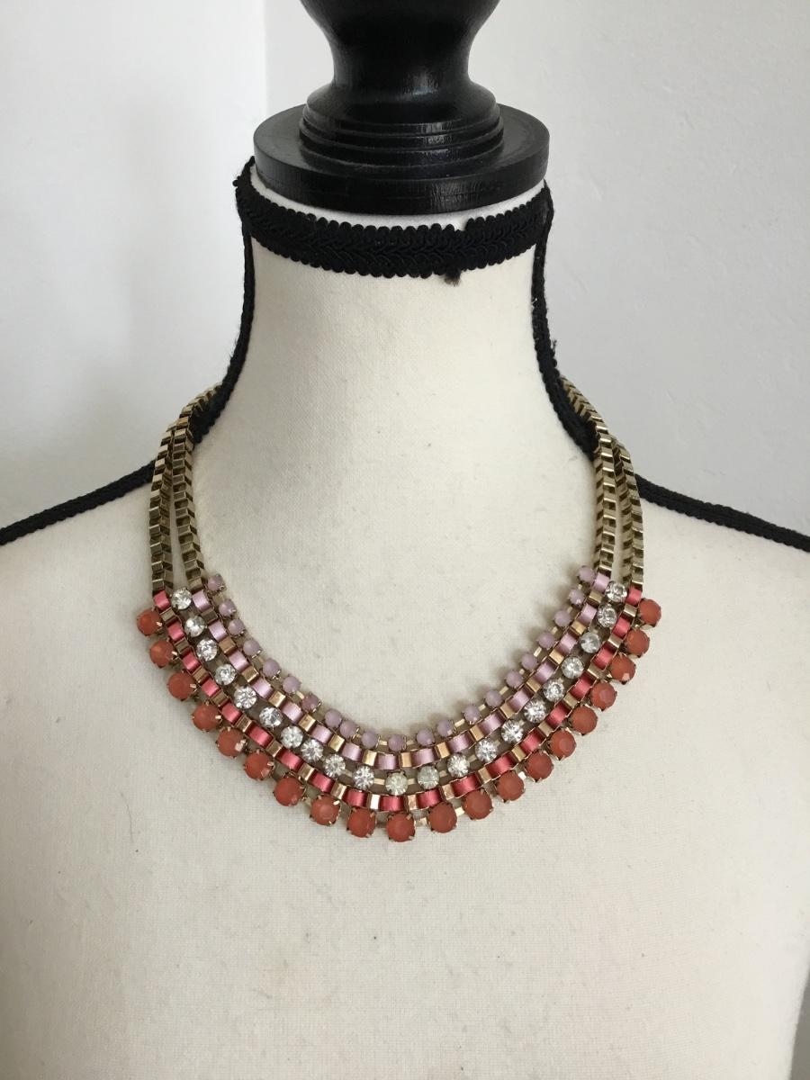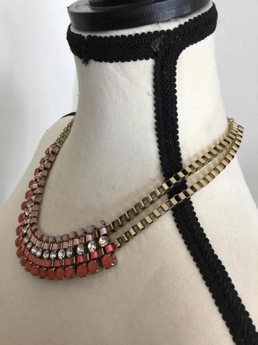 Beautiful, gold tone, multicolored, rhinestone statement, necklace