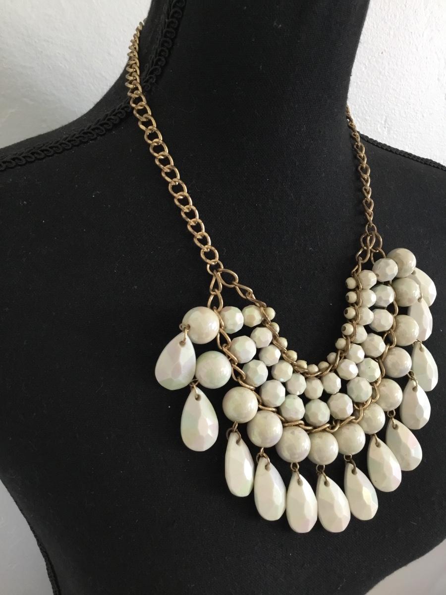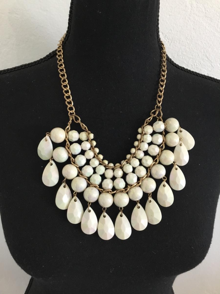 Beautiful, gold tone, Pearl luster, beaded statement, necklace