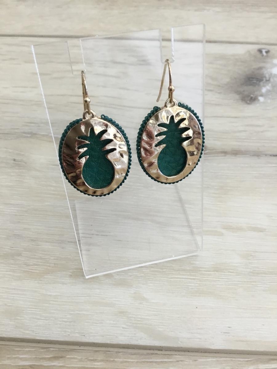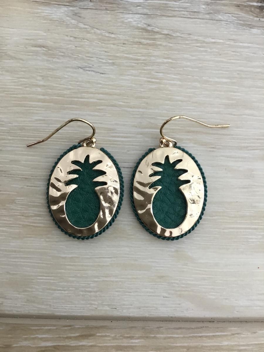 Beautiful gold tone & Royal green, pineapple, statement, earrings