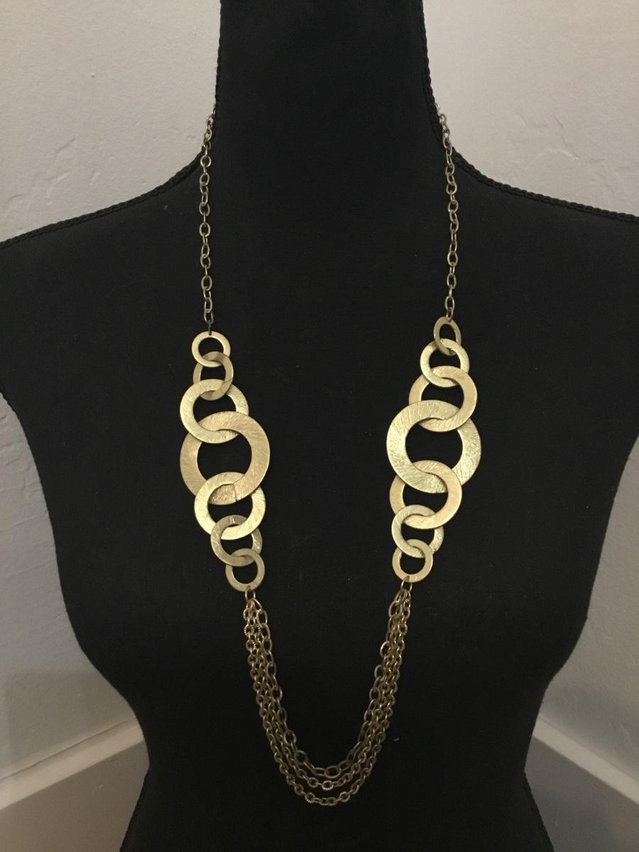 Beautiful, gold tone, satin, gold tone, texture, statement, chain necklace