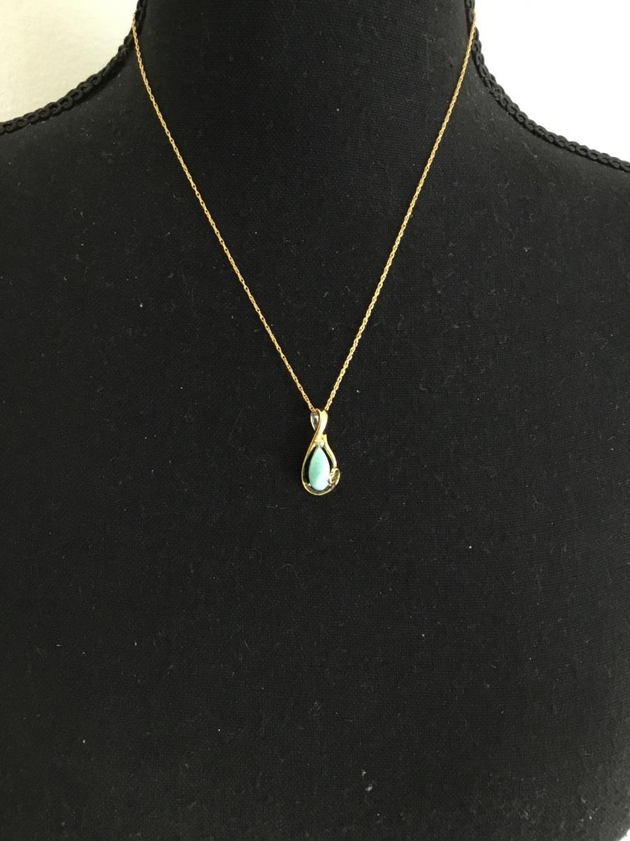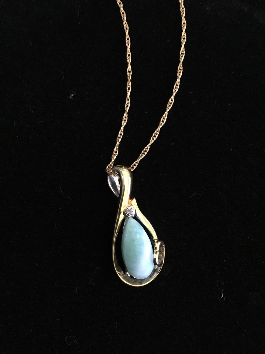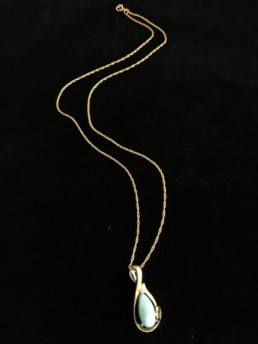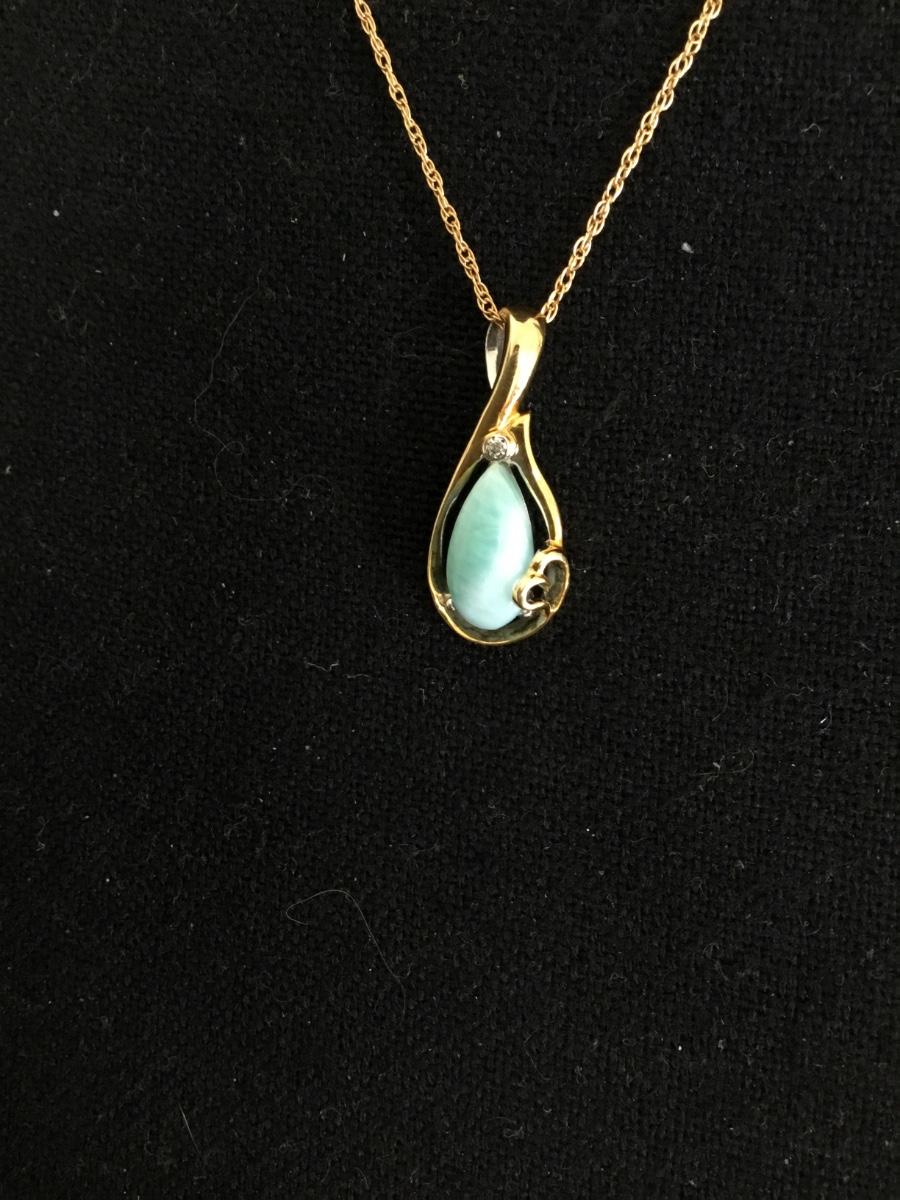 Beautiful, gold tone, vintage chain necklace, and vintage gold-tone pendant with Larimar gemstone