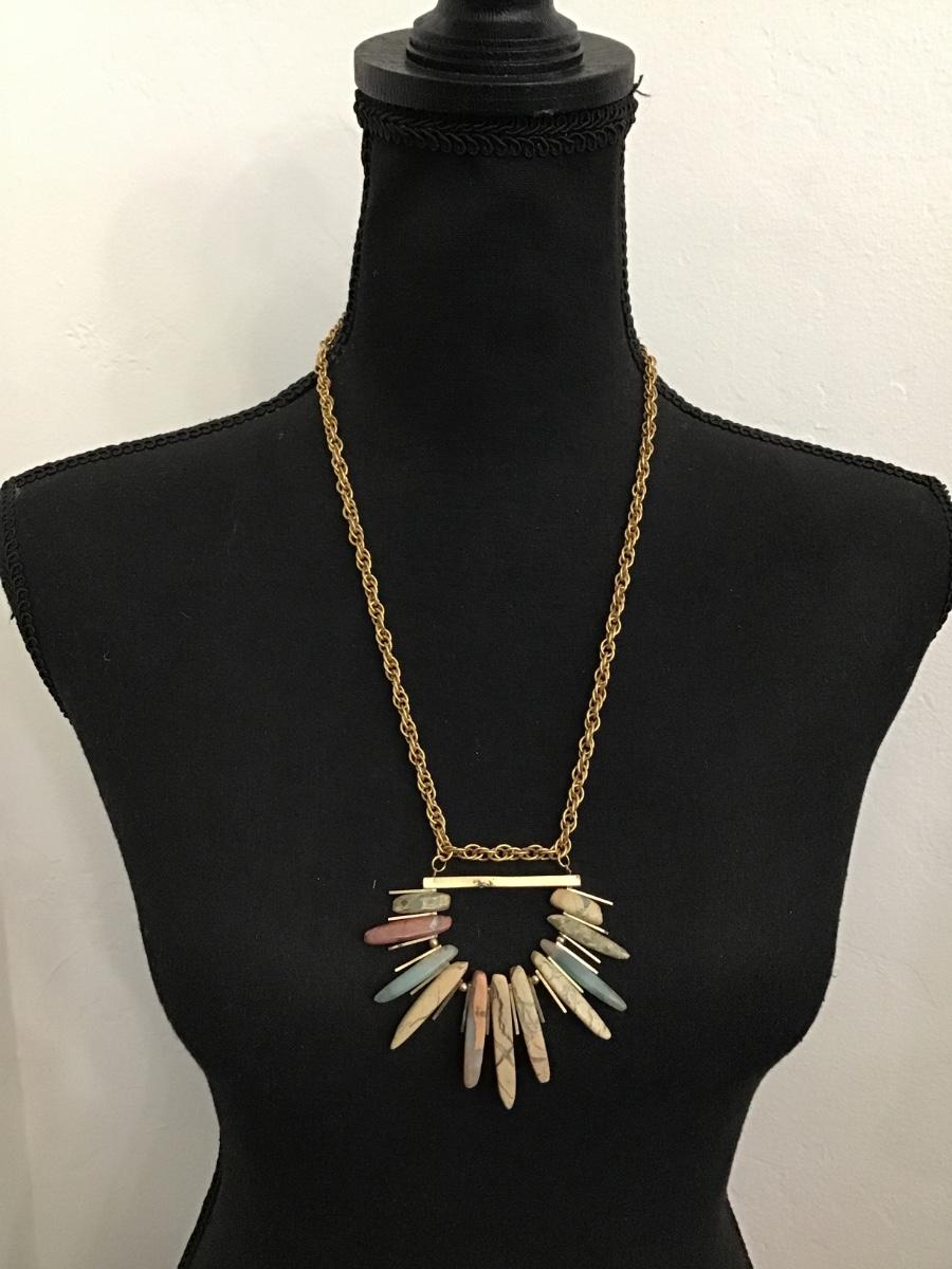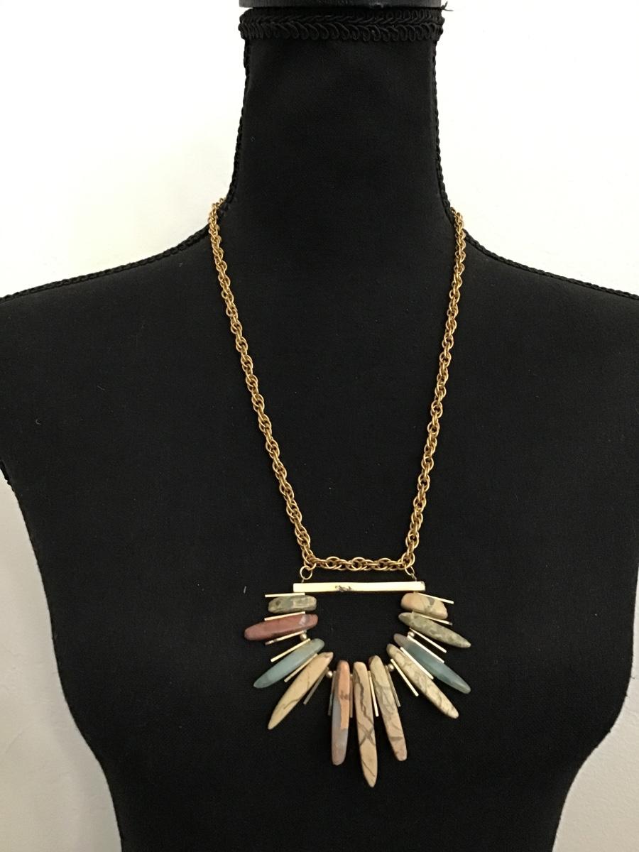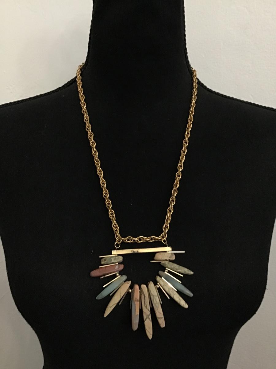 Beautiful, gold tone, vintage, gemstone, pendant, necklace, statement, necklace