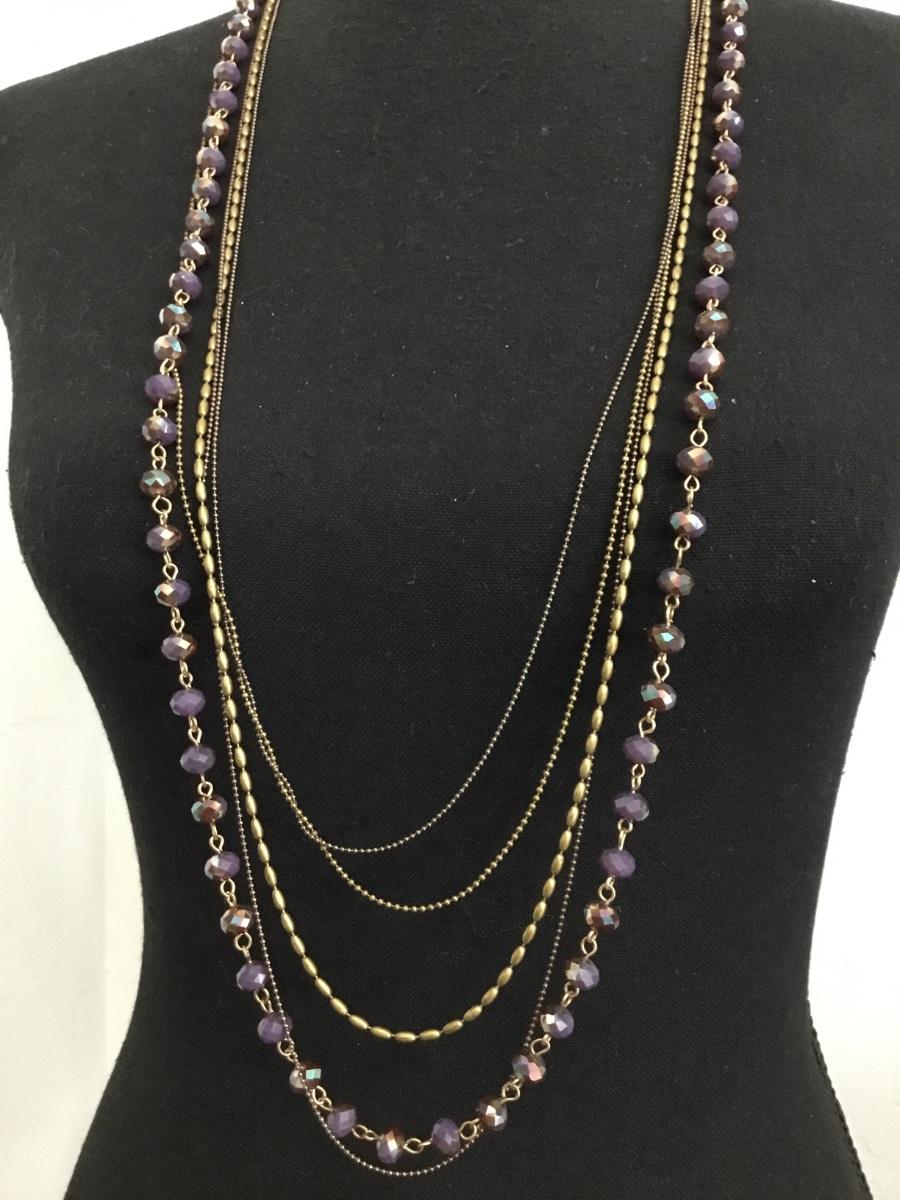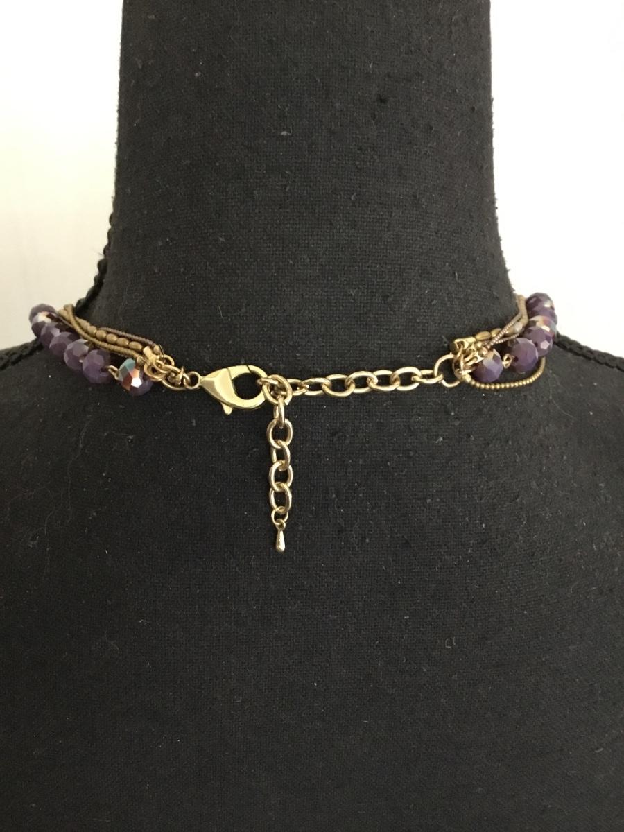 Beautiful gold toned and faceted plum purple crystal or glass rhinestone beautiful multi strand statement necklace