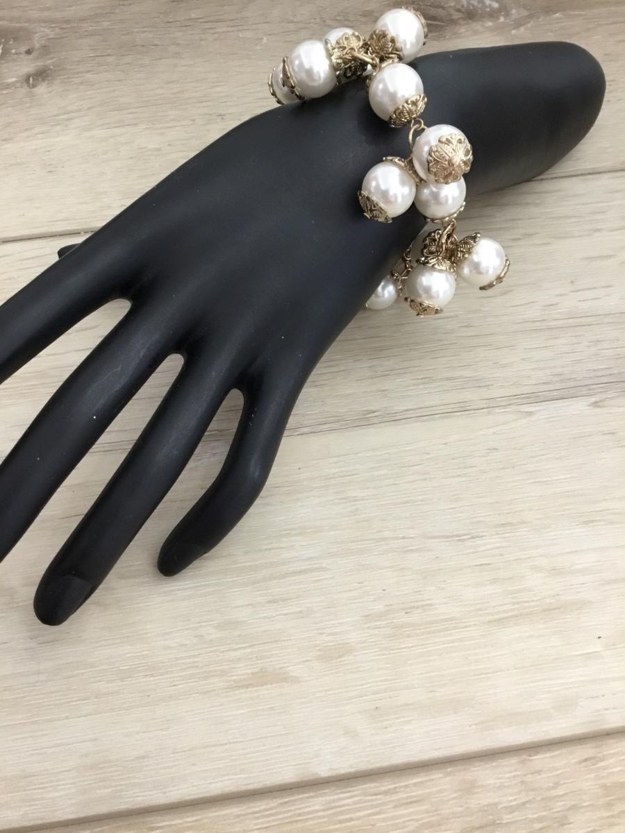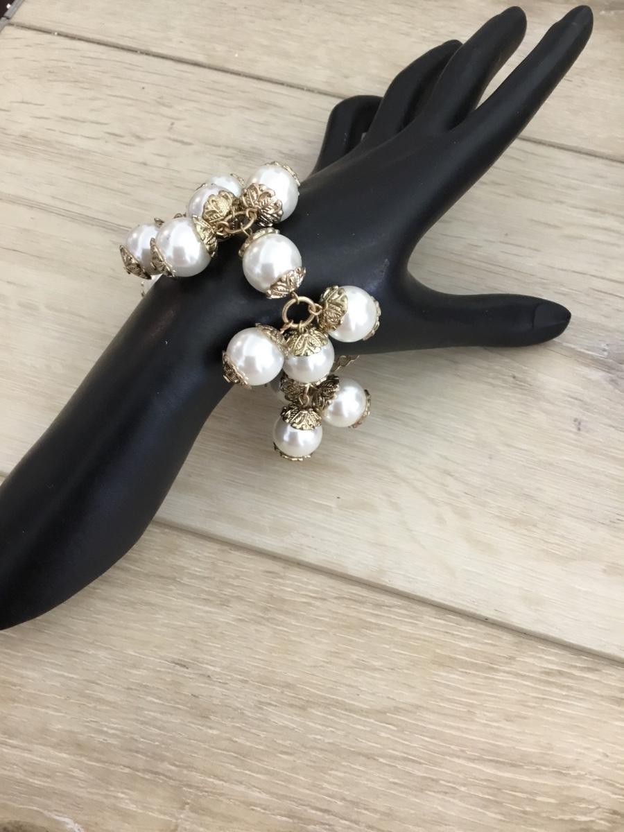 Beautiful, gold toned cha-cha pearl fashion bracelet