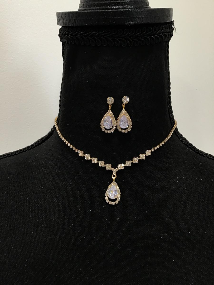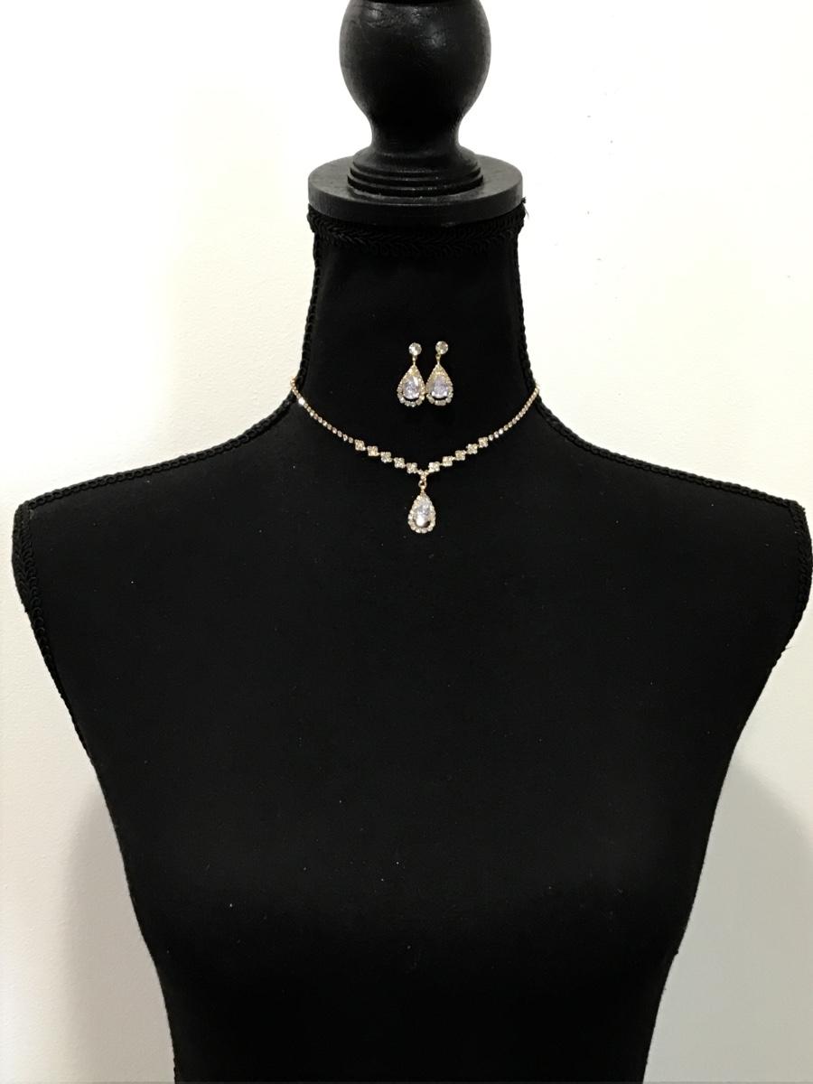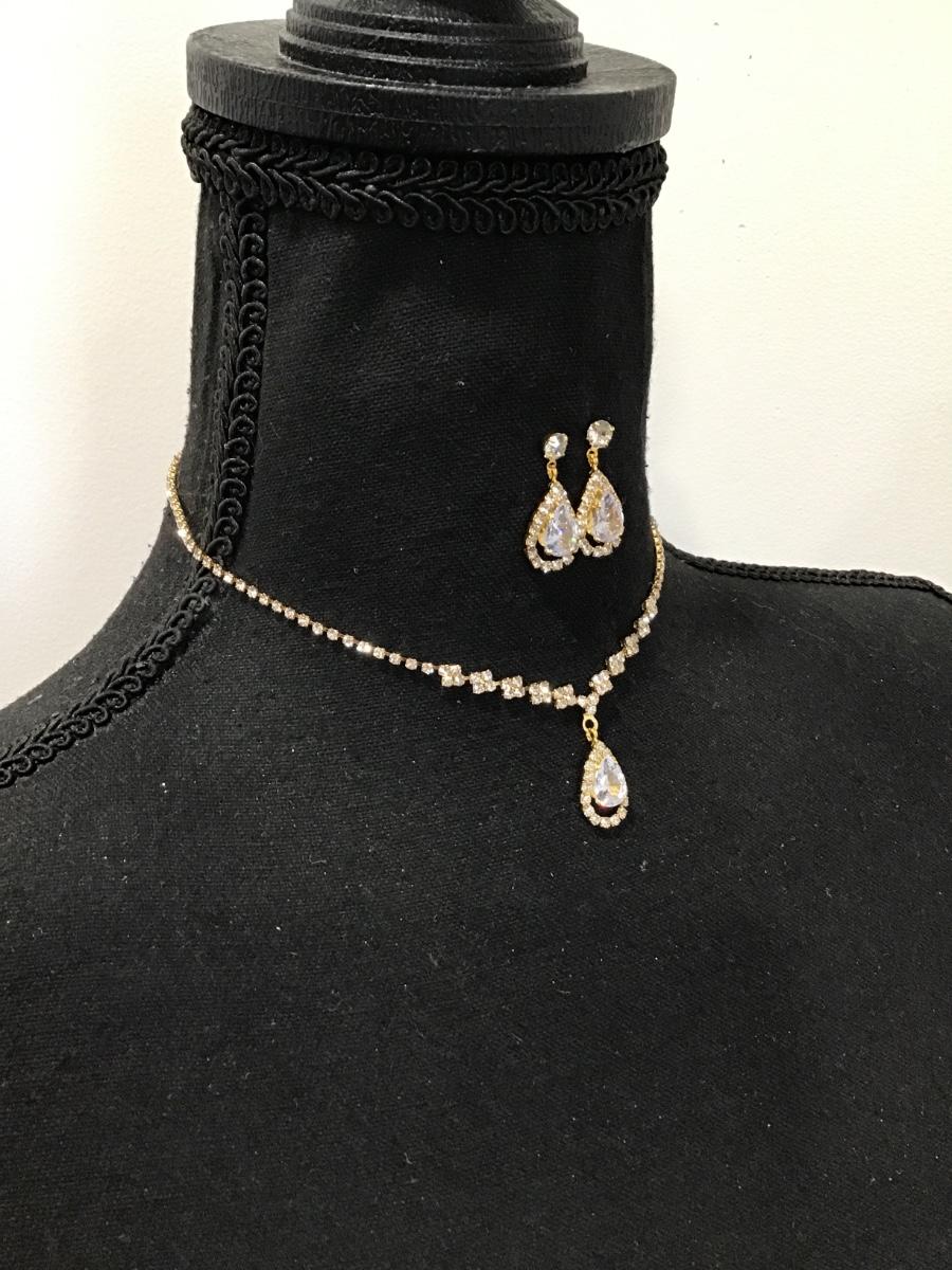 Beautiful, gold, toned, crystal rhinestone statement, necklace, and earring set