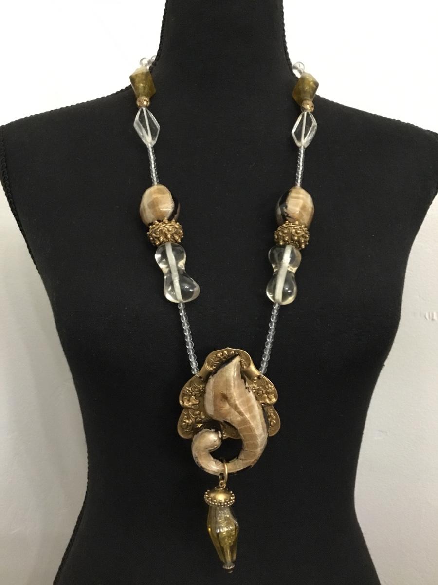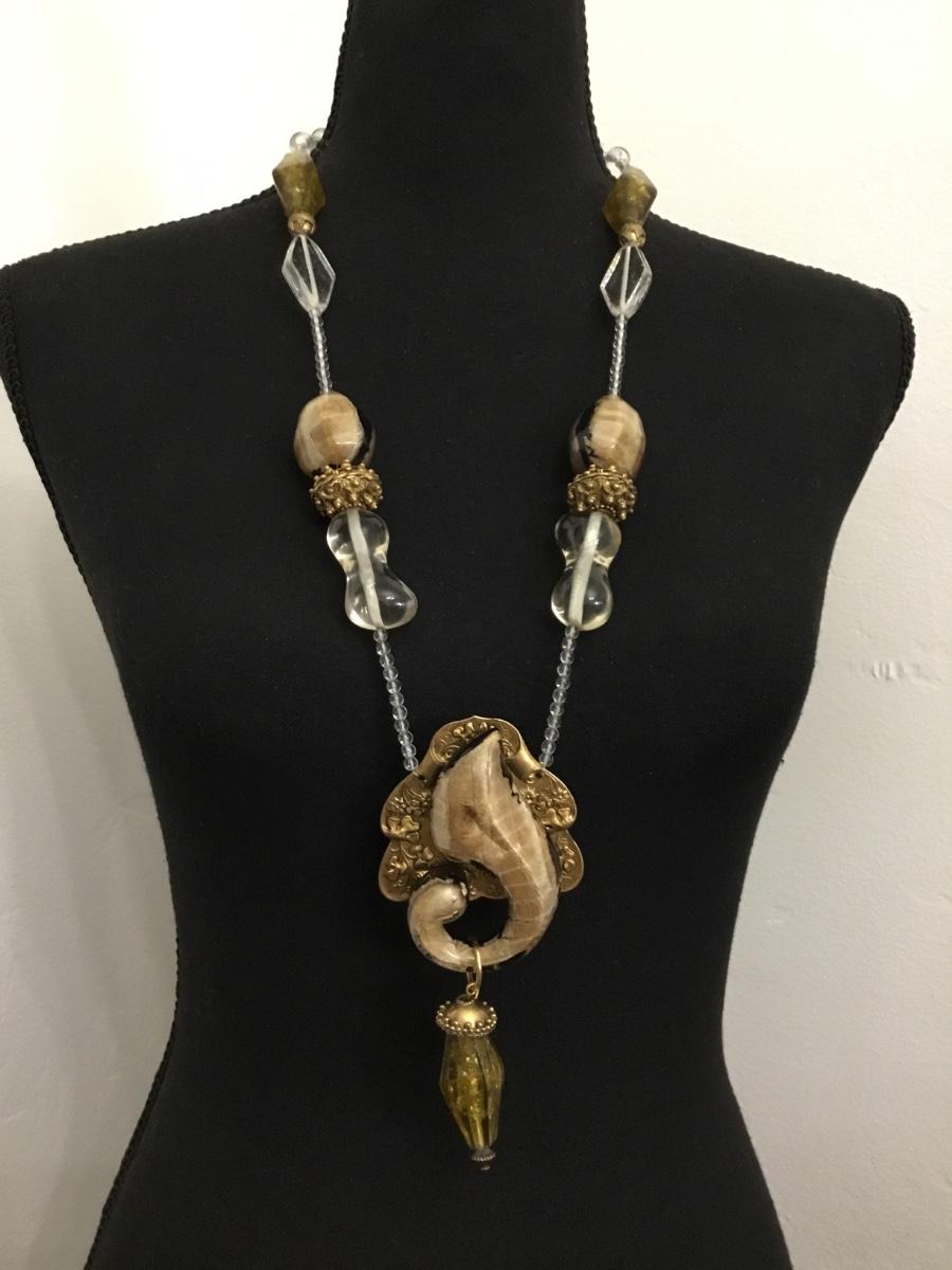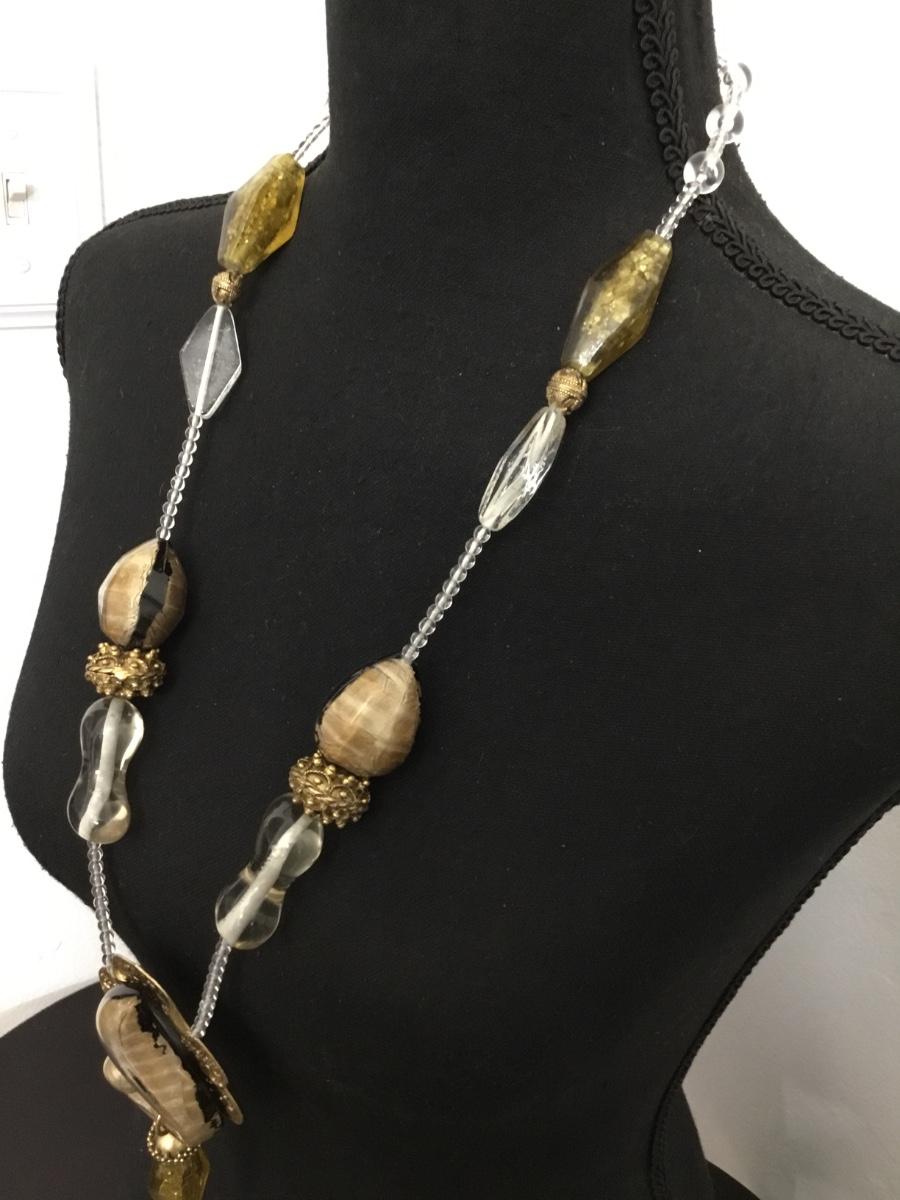 Beautiful, gold, toned glass bead statement necklace makers, mark