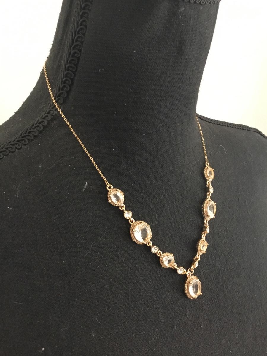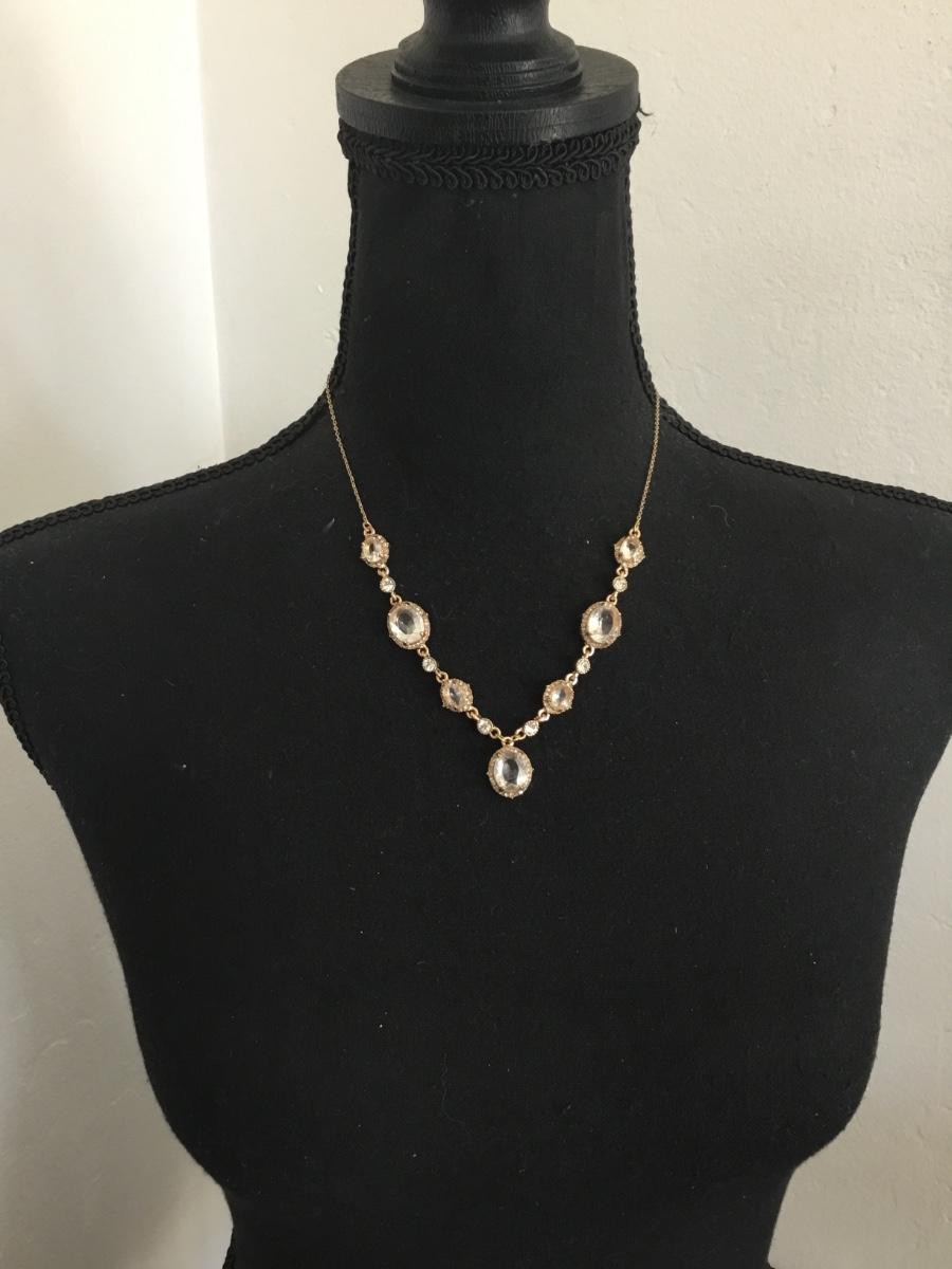 Beautiful, gold, toned glass or crystal statement necklace