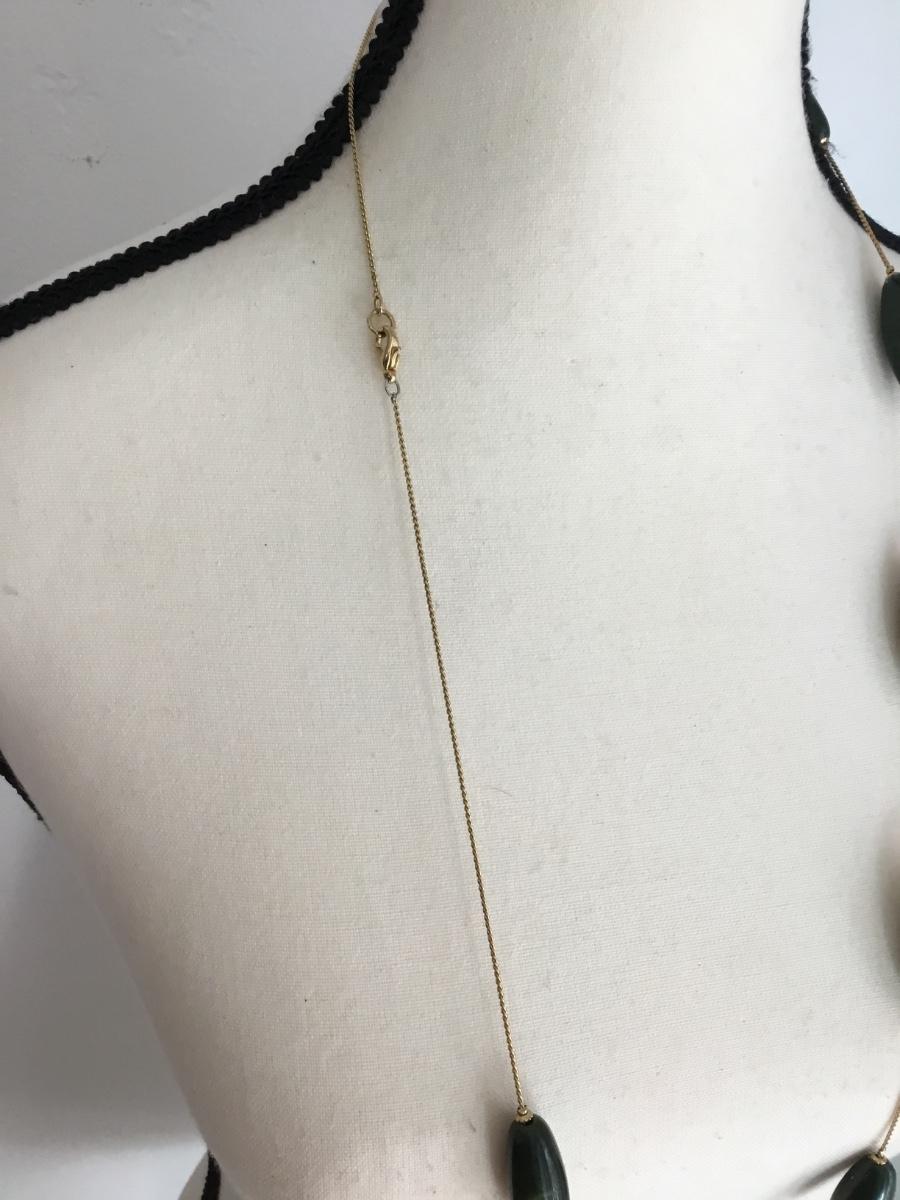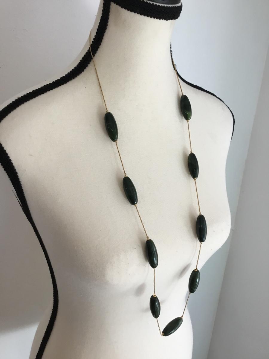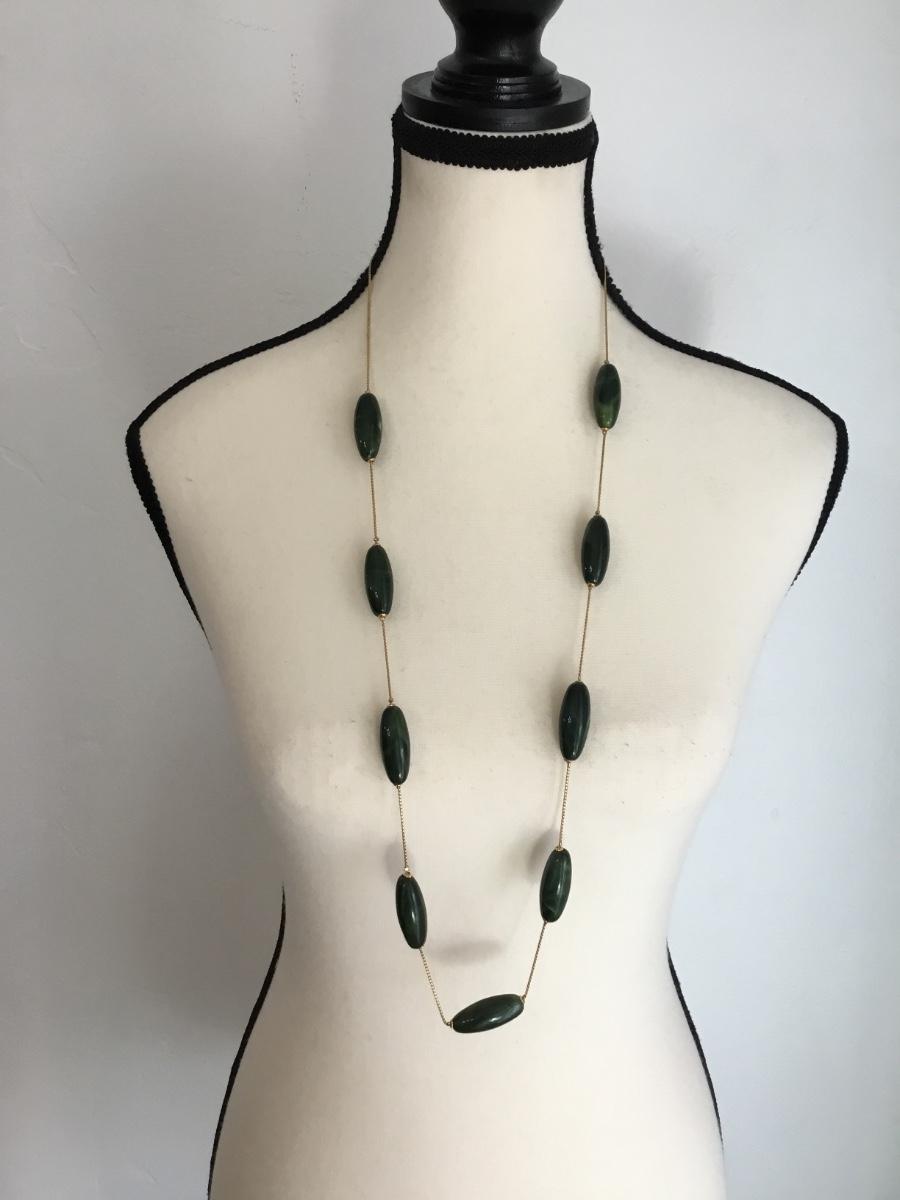 Beautiful, gold toned , large green bead vintage necklace