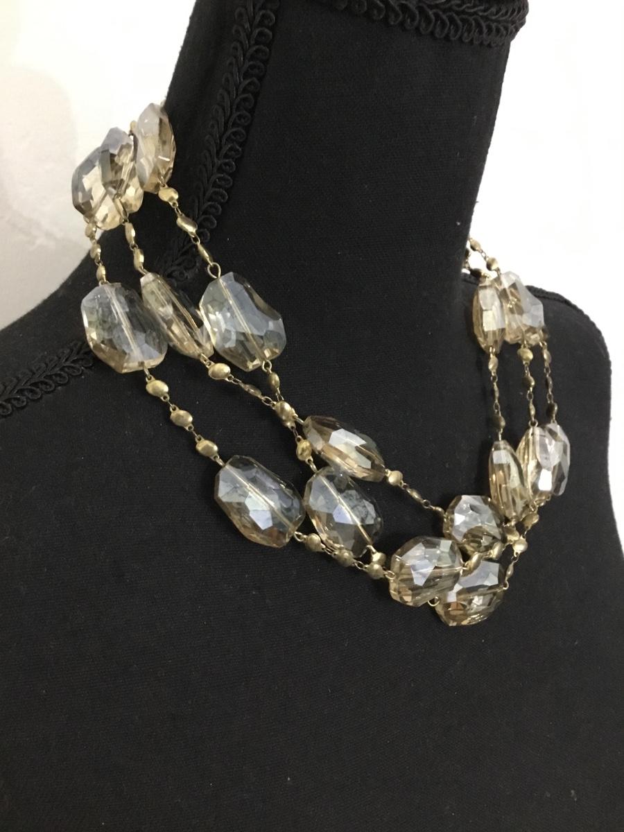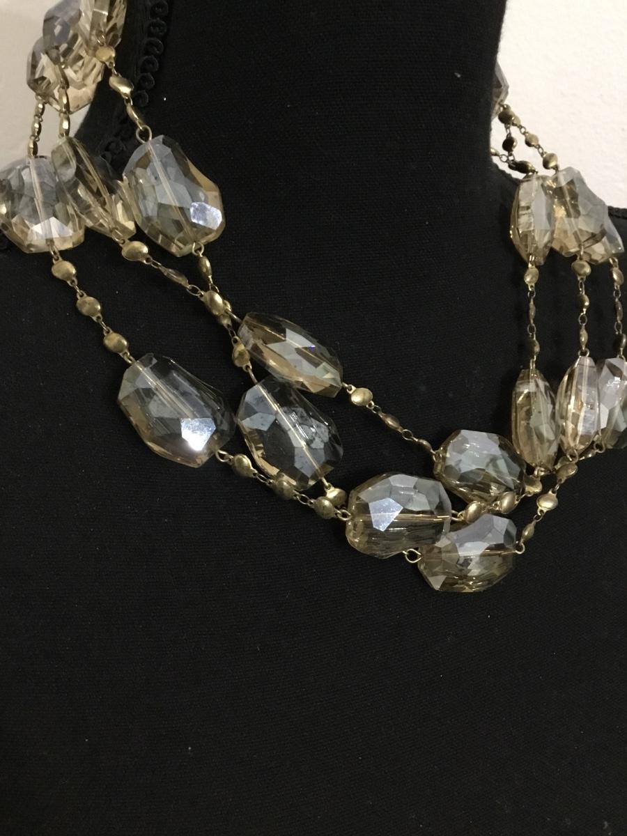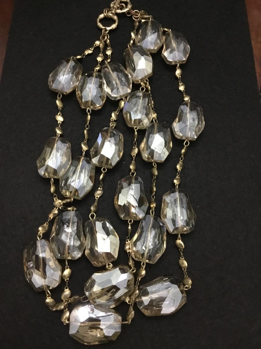 Beautiful Gold toned, multi layer, large champagne, Crystal statement, necklace with toggle clasp