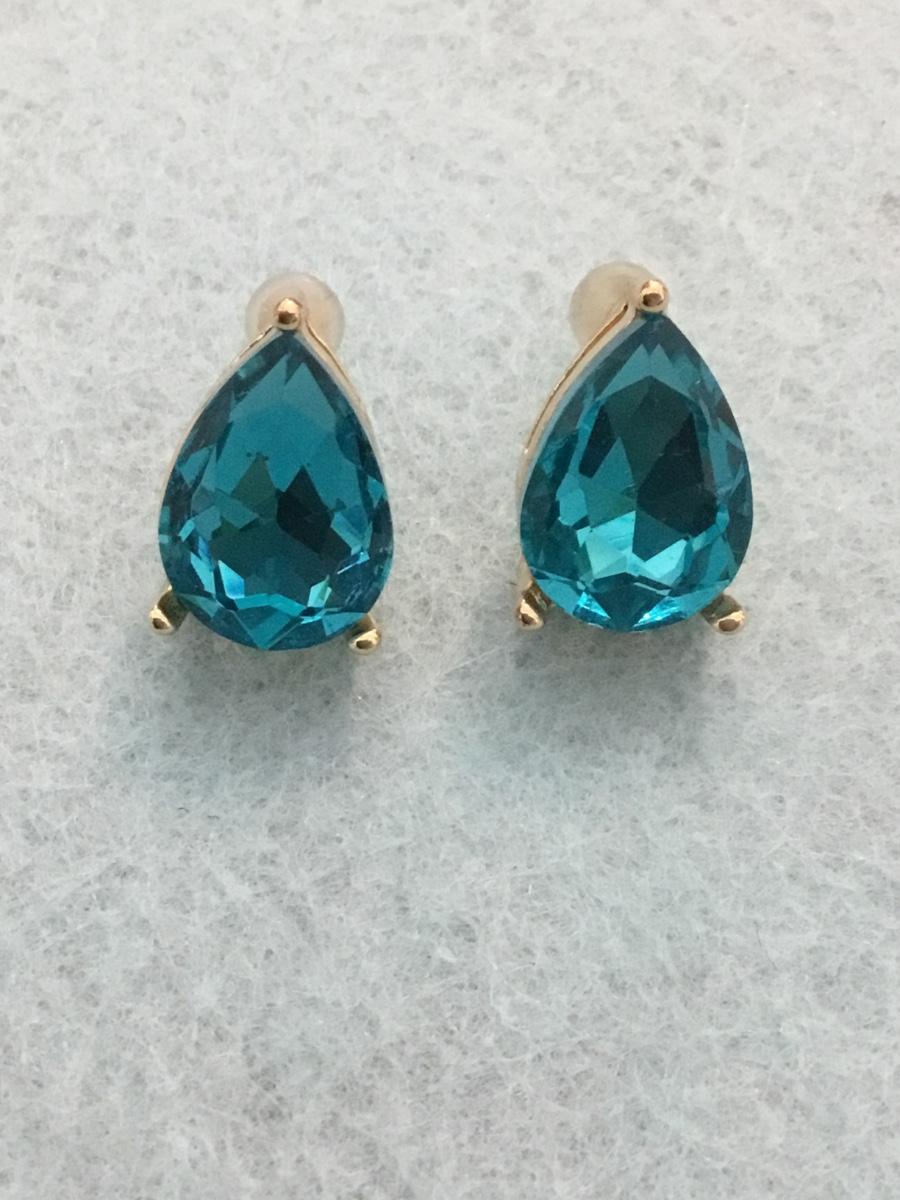 Beautiful, gold, toned, pear-shaped, rhinestone stud earrings