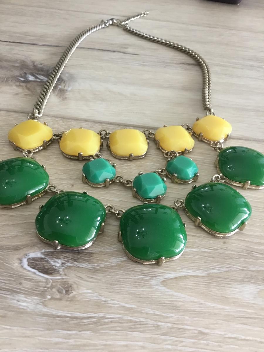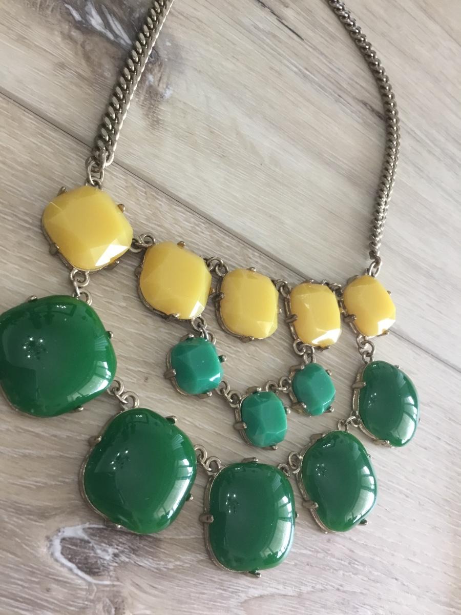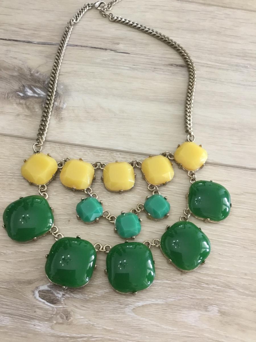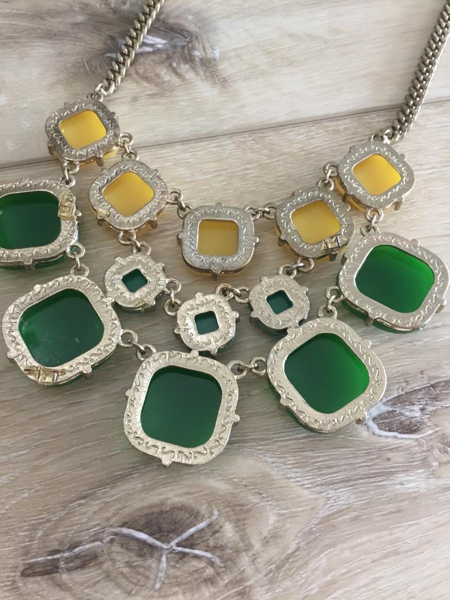 Beautiful, gold toned, seaweed, green sherbet, yellow aquamarine statement necklace