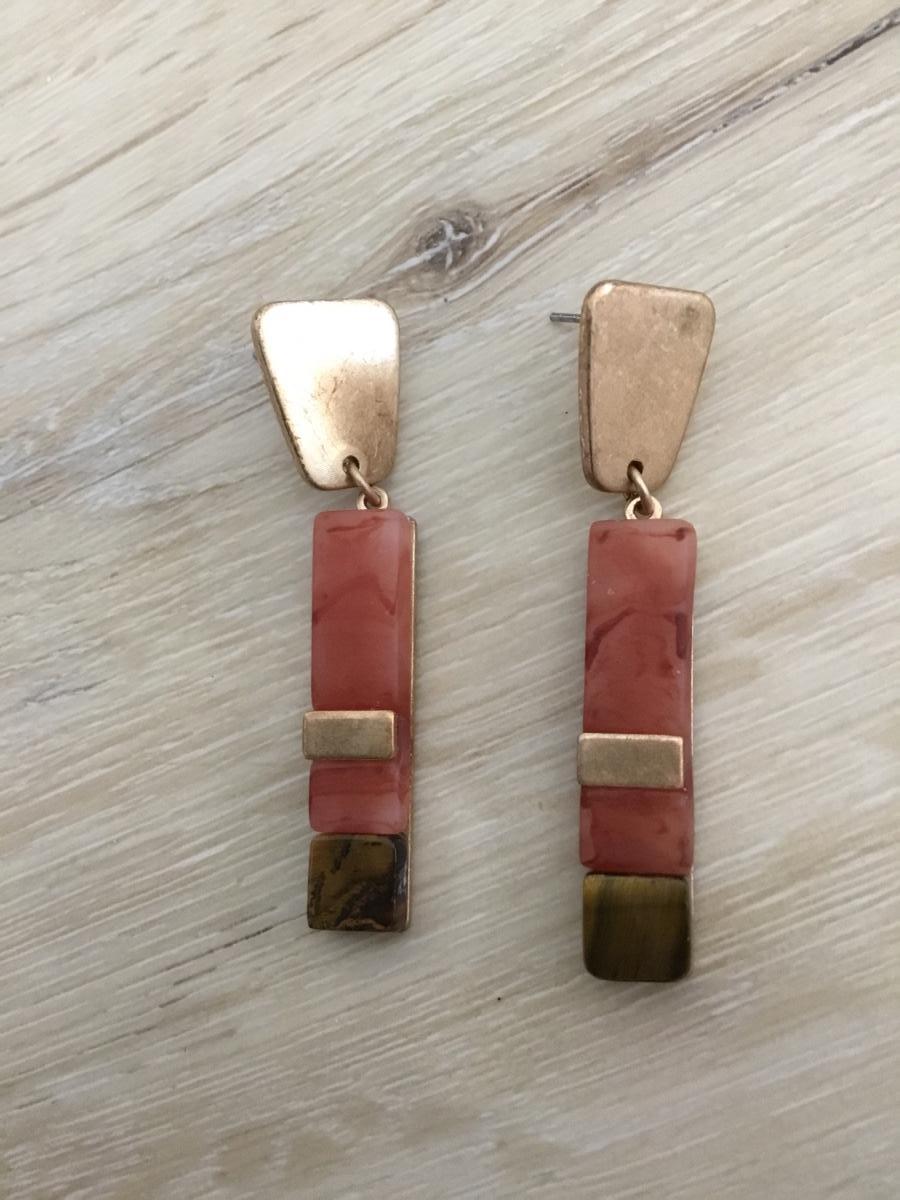 Beautiful, gold, toned, tigers, eye, stone fashion earrings