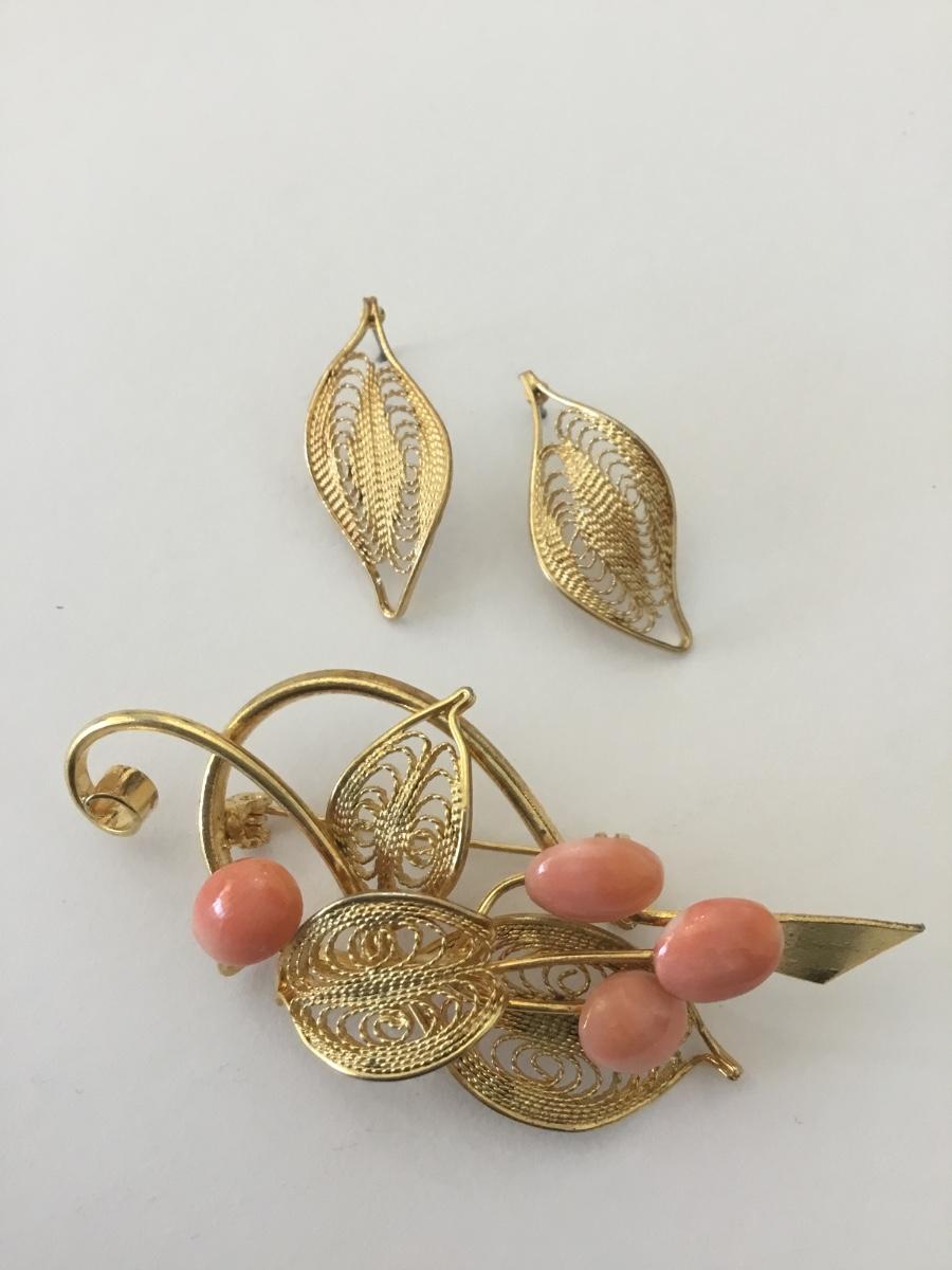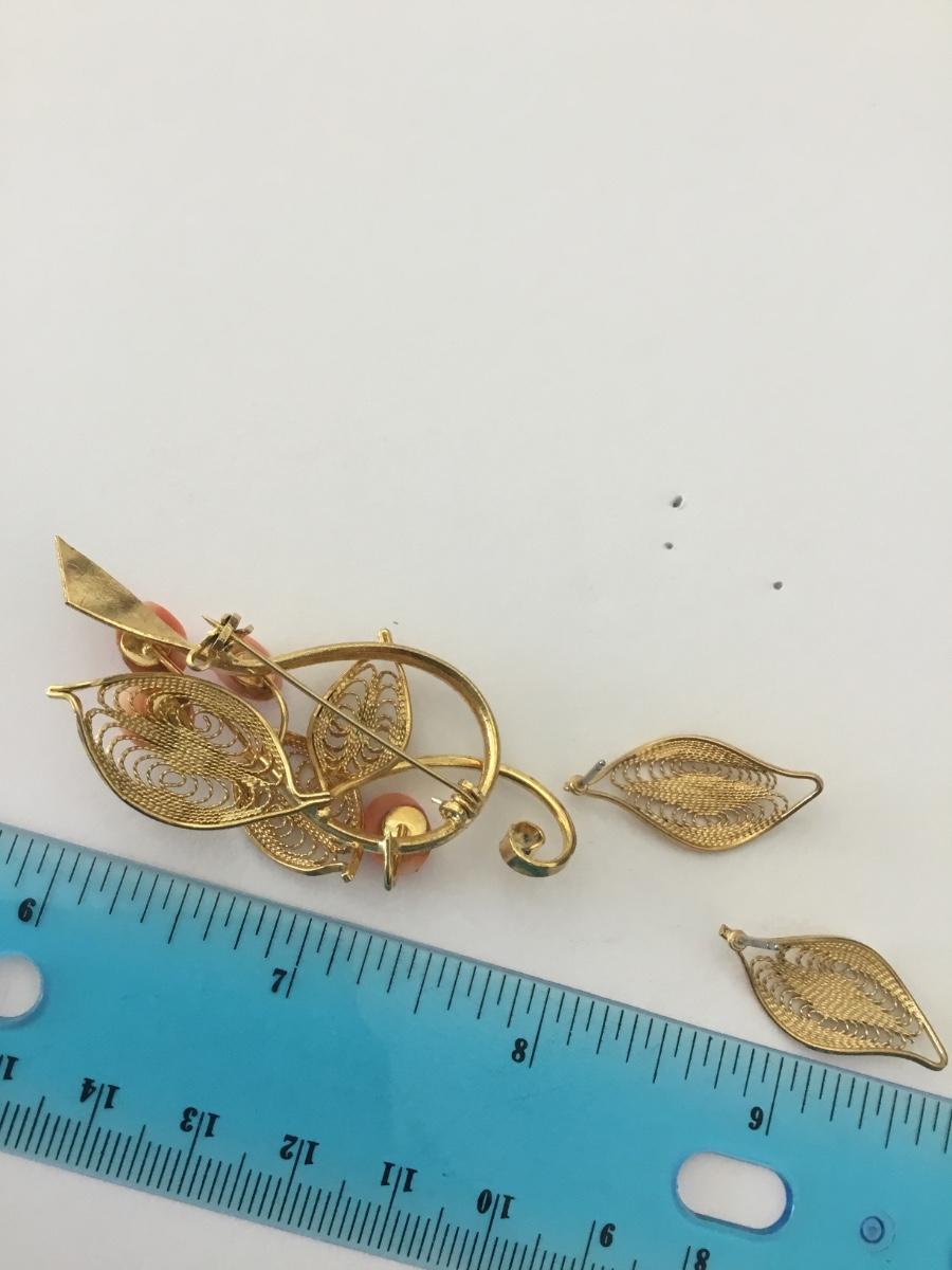Beautiful, gold, toned, vintage, brooch, and earrings