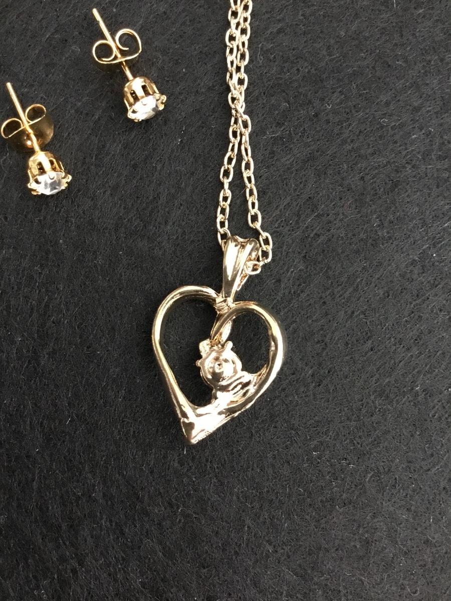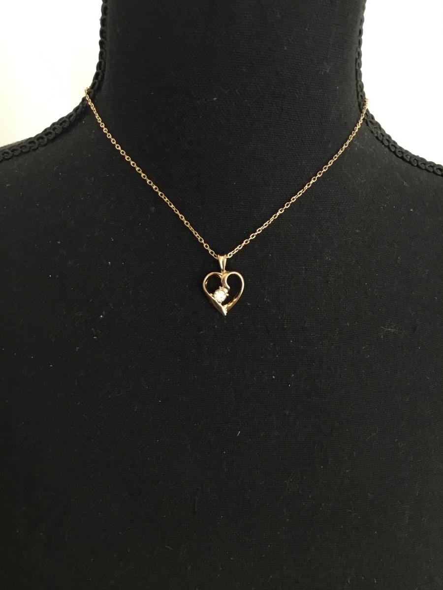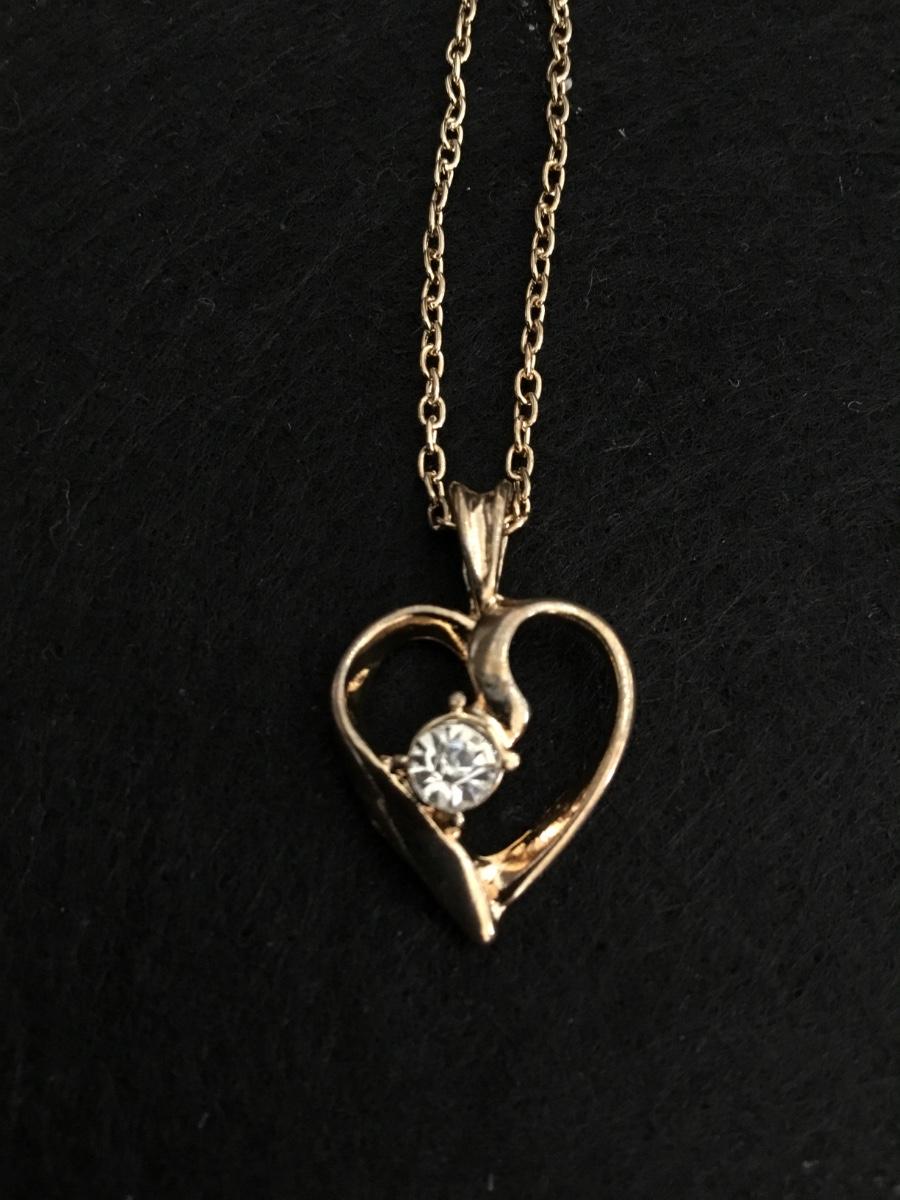 Beautiful, gold, toned, vintage heart pendant with clear, rhinestone stud earrings