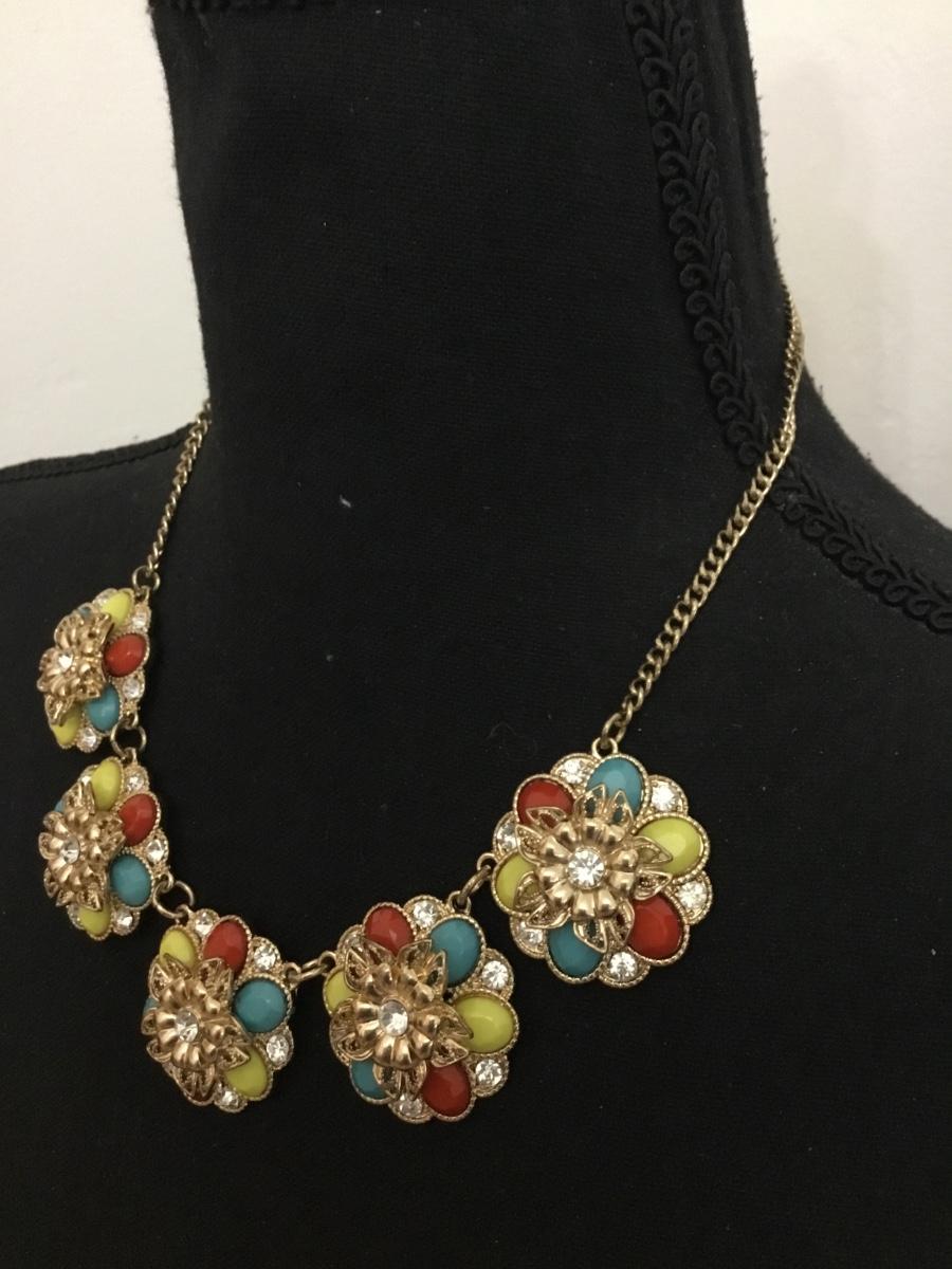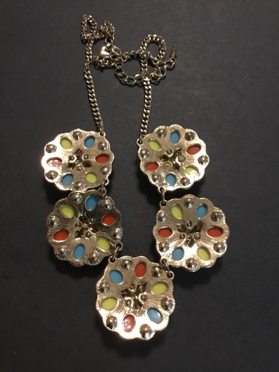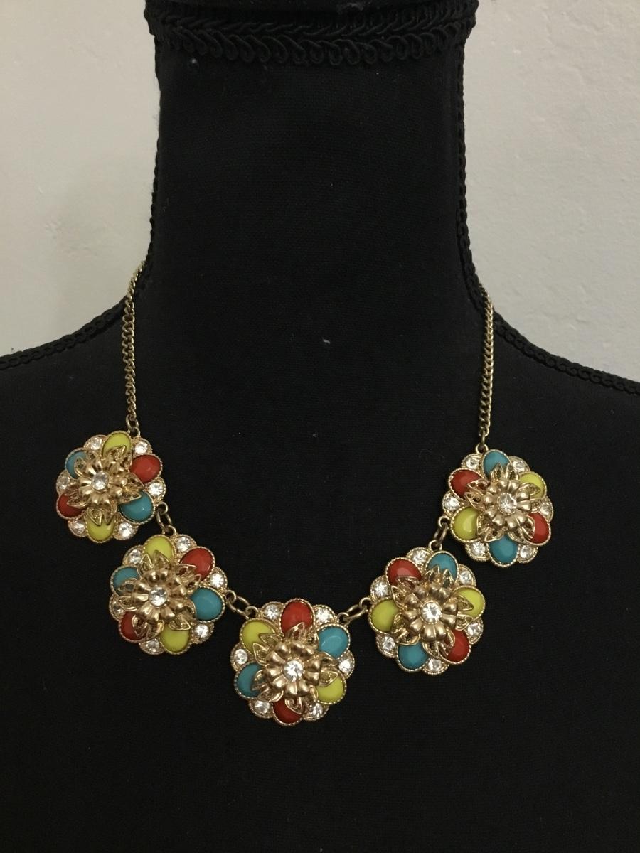 Beautiful, gold tones, multicolored flowers, statement, necklace