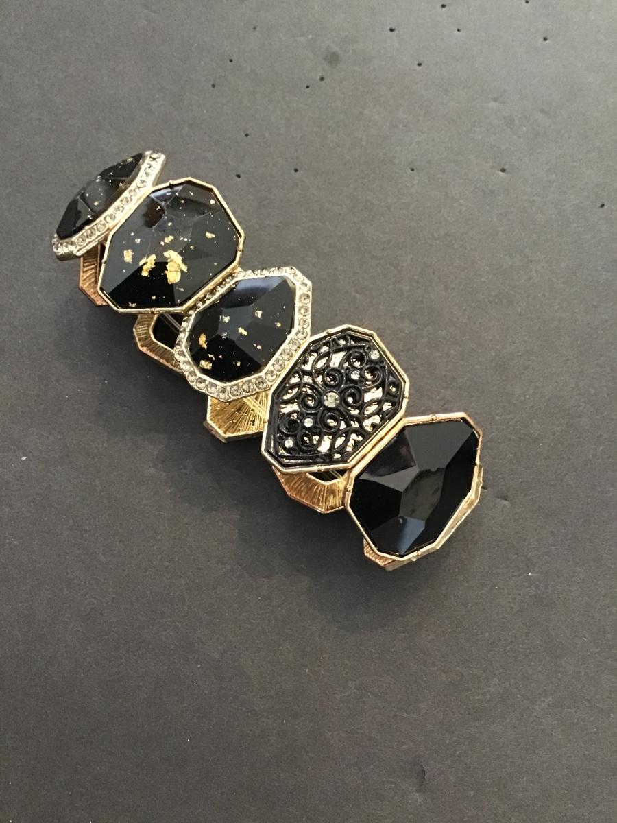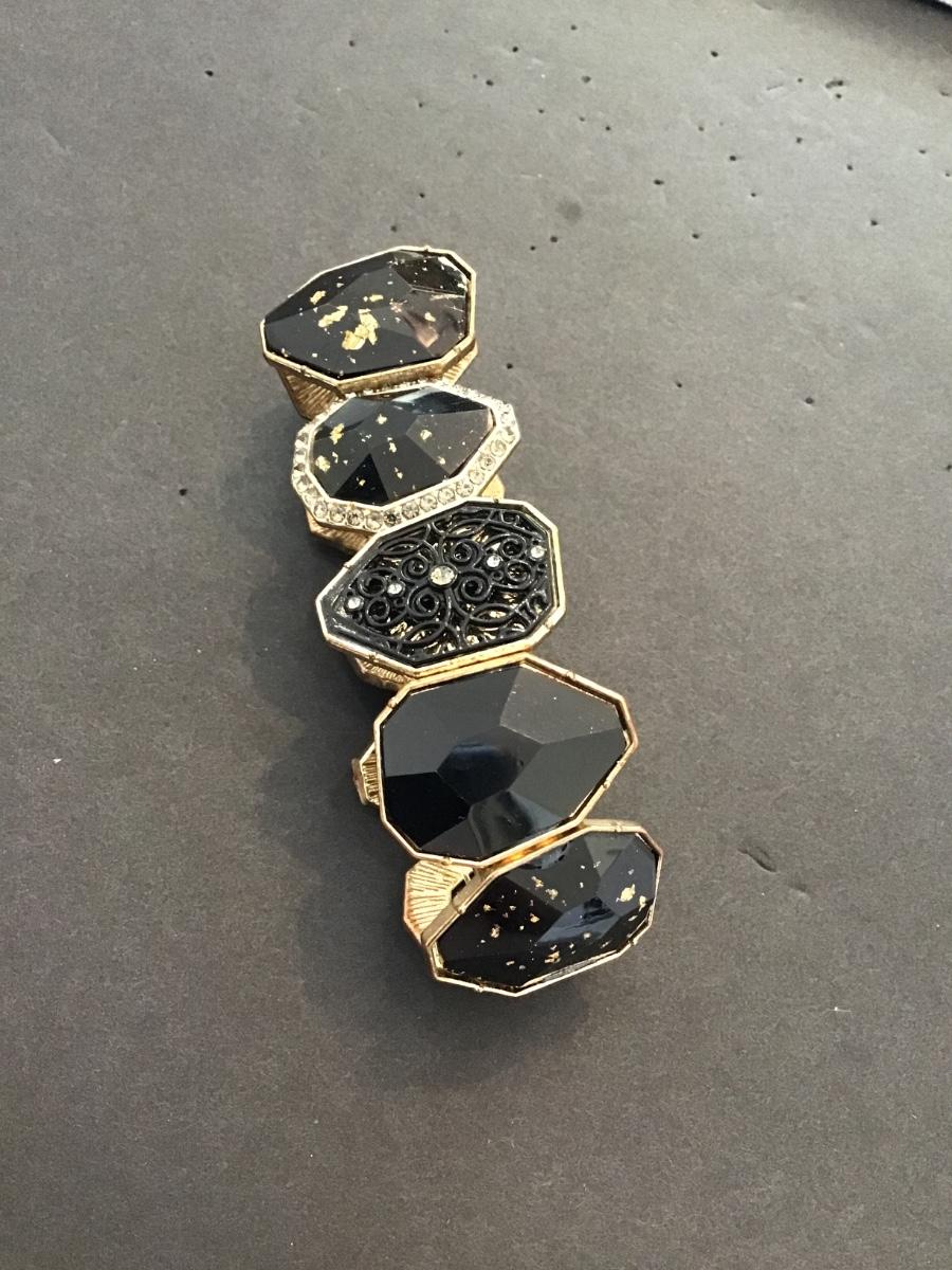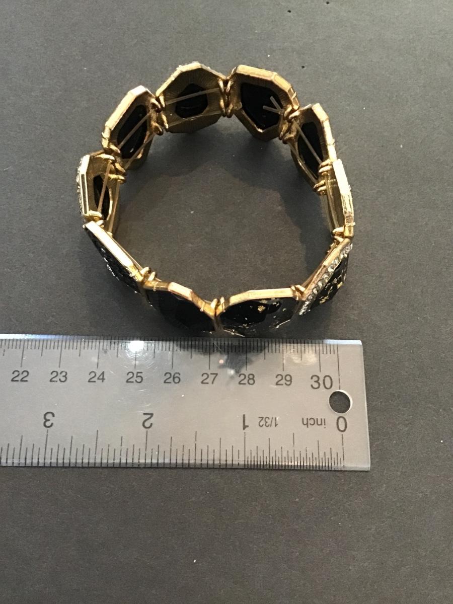 Beautiful, golden and black fashion, statement, stretchy bracelet. Please see attached photos.